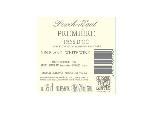 | Libellé | Puech Haut Premiere , 2023 - Pays d'Oc IGP - Blanc Sec - 75 cl |