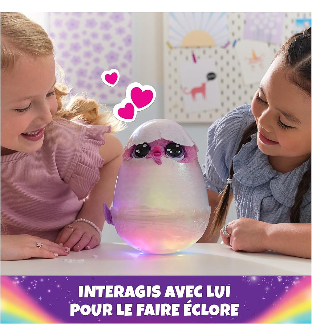 Les Hatchimals sont des mystérieuses créatures cachées dans des œufs. Il existe deux types d’éclosion : Ciel et Glace. Quel Hatchimals feras-tu éclore ? Chaque œuf appartient à une espèce différente et tu devras interagir avec lui pour le faire éclore. 3 modes de jeux : Soins, Découvertes et Jeux. 4 piles LR6 fournies. Dès 5 ans.
