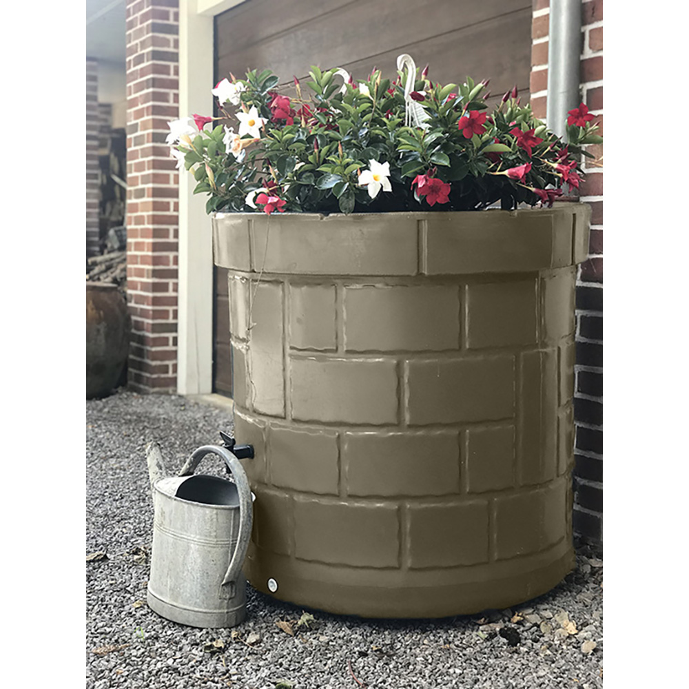 Capacité de récupération eau de pluie: 340L_ Longueur :87 cm_Hauteur : 83.5cm_ Largeur : 87 cm_Poids : 20 kg_ Pour récupérer les eaux de pluie depuis une gouttière idéalement ou sans gouttière_ Pour usage décoratif_ Pour planter des fleurs ou aromates_ Matière : polyéthylène haute densité (contact alimentaire )équipé d'un robinet PEHD noir et un bouchon de vidange blanc_ Pot très résistant aux chocs. plage d'utilisation : -30°C à +60°C_ 100% recyclable_ Traité anti UV_Finition lisse apparence pierre_Marque : PLAST'UP ROTOMOULAGE_Fabrication Française Capacité de récupération eau de pluie: 340L
