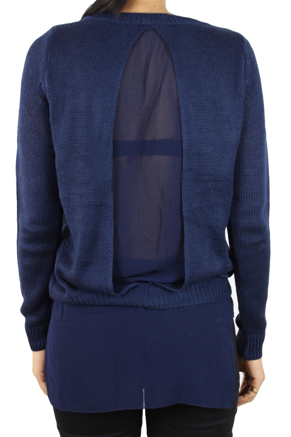 Pull en maille, doublé avec un voile a l'intérieur grand col rond manches longues.