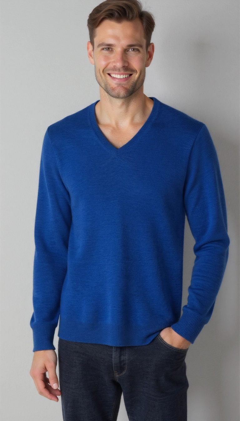 Pull manches longues 100% cachemire homme Bleu Tissaia