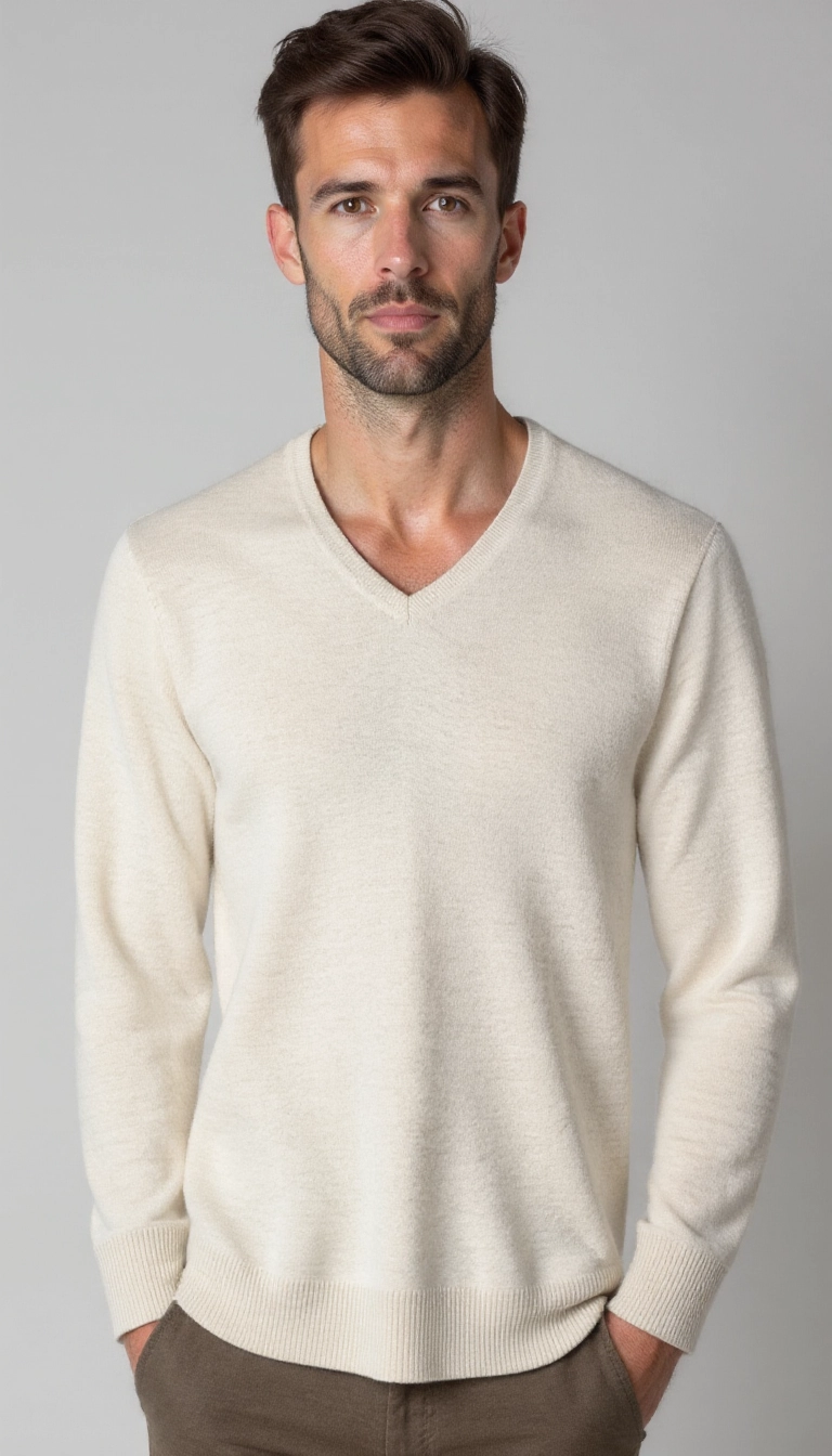 Pull manches longues 100% cachemire homme Ecru Tissaia