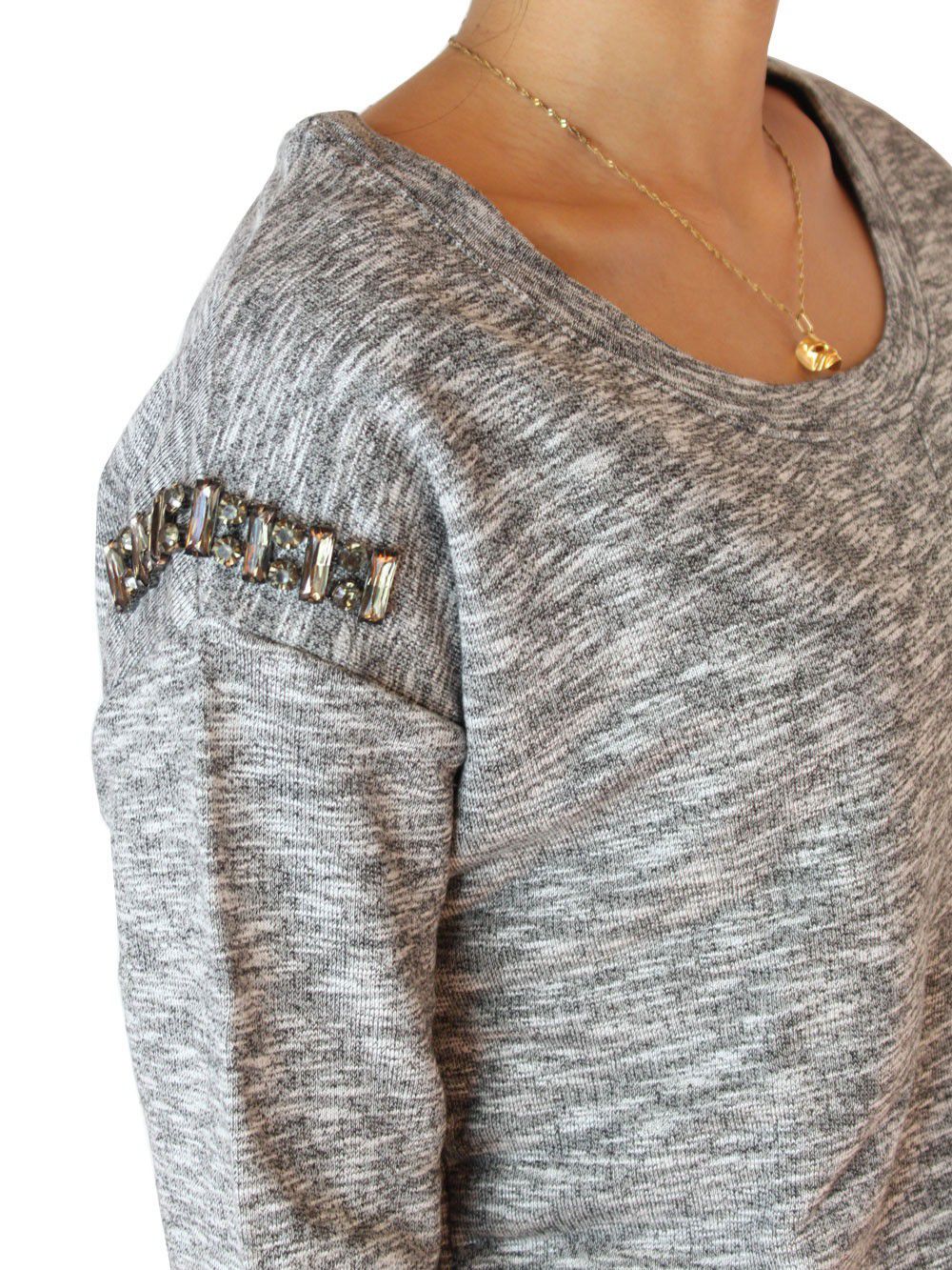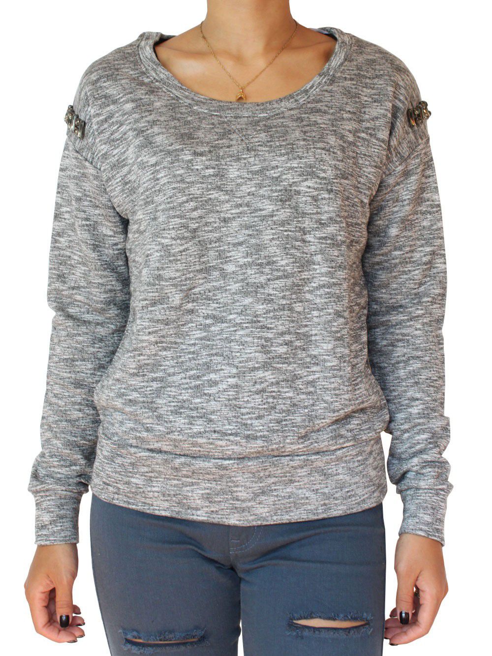 Pull Spacey manches longues col rond avec ornements sur les épaules.