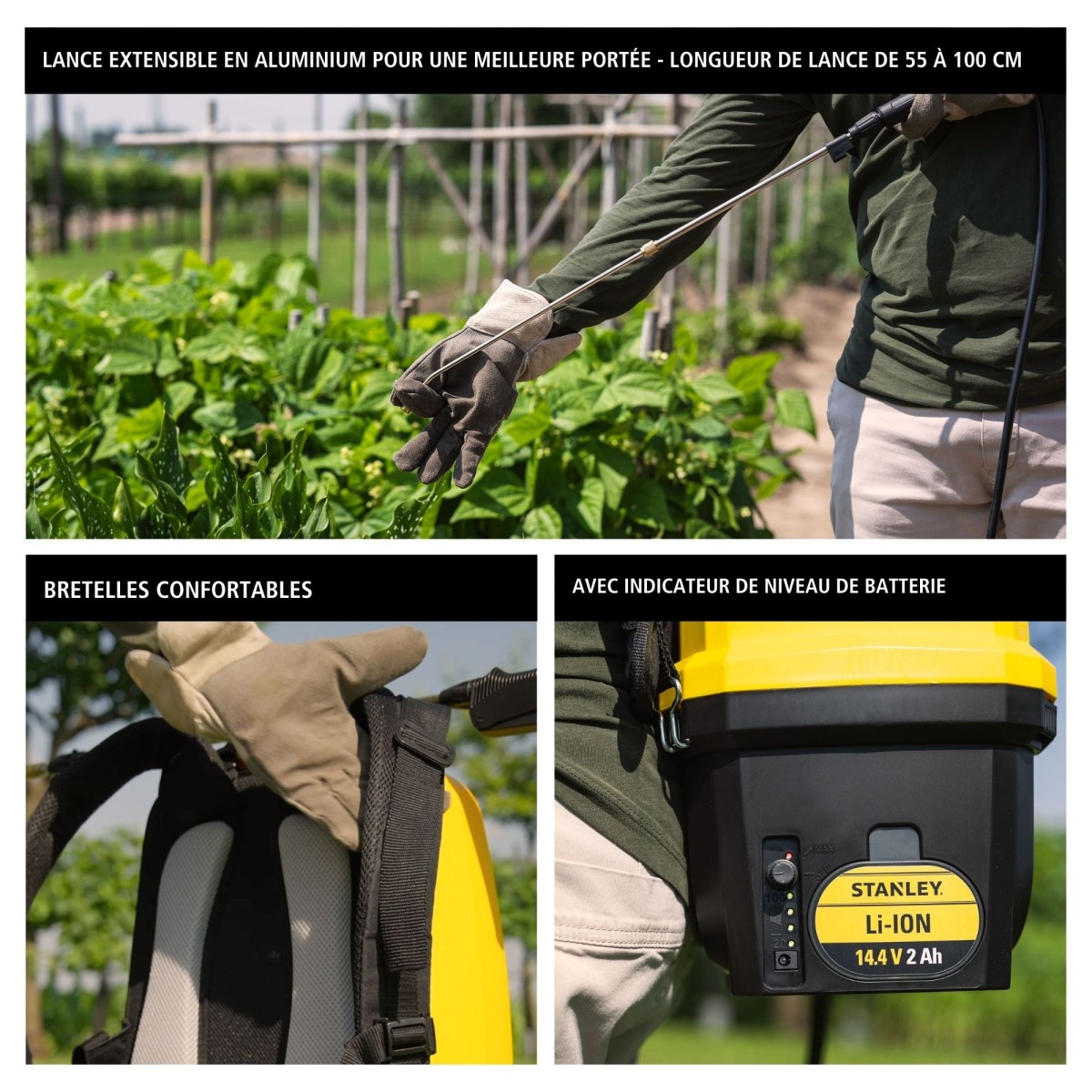 | Libellé | Pulvérisateur Electrique 16L, Batterie Lithium 14.4 V / 2.0 Ah - Pulvérisateur Jardin Végétaux + Lance Télescopique STANLEY |