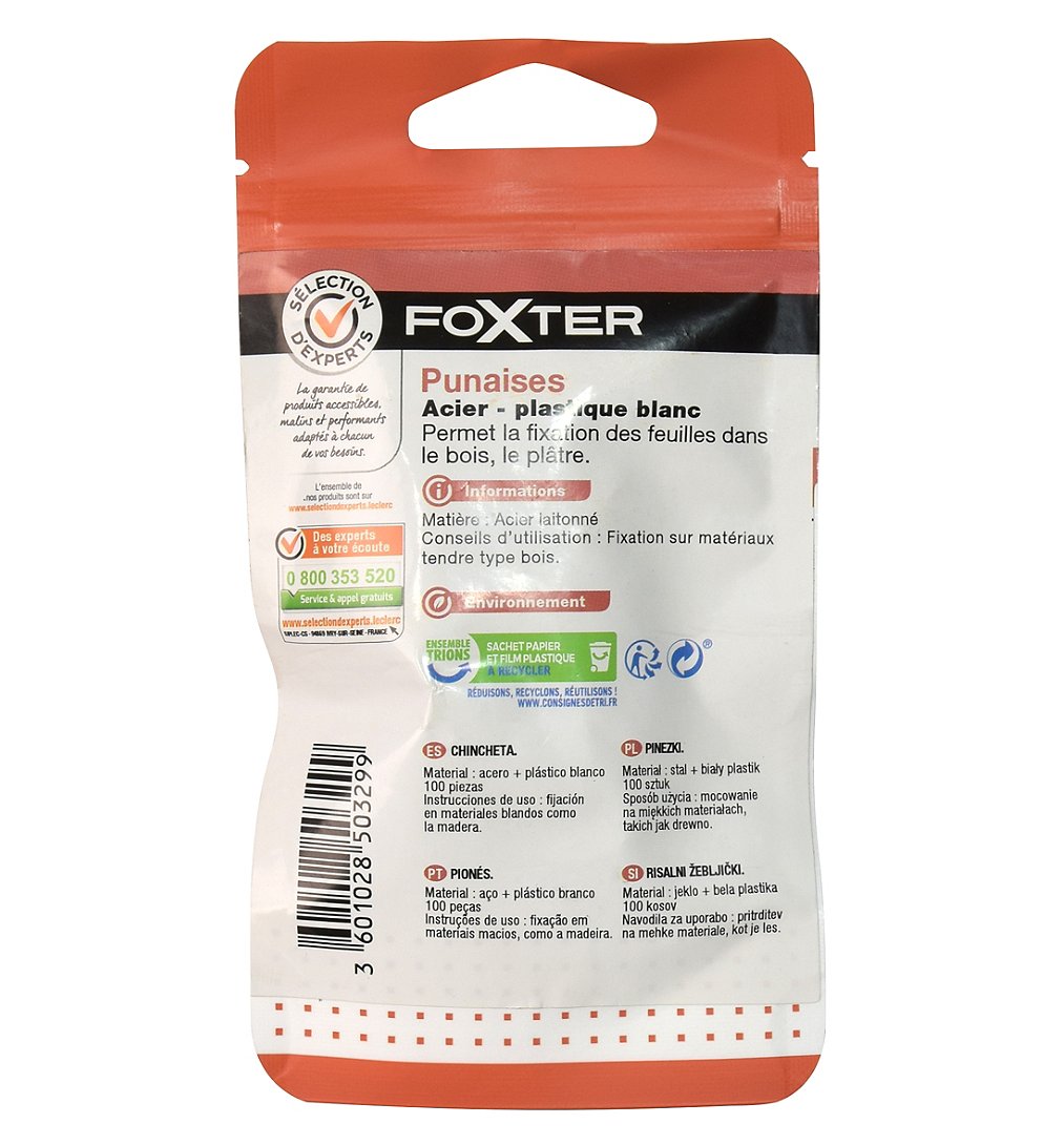| Libellé | Punaises acier-plastique blanc x100 - Sélection d'Experts - FOXTER |