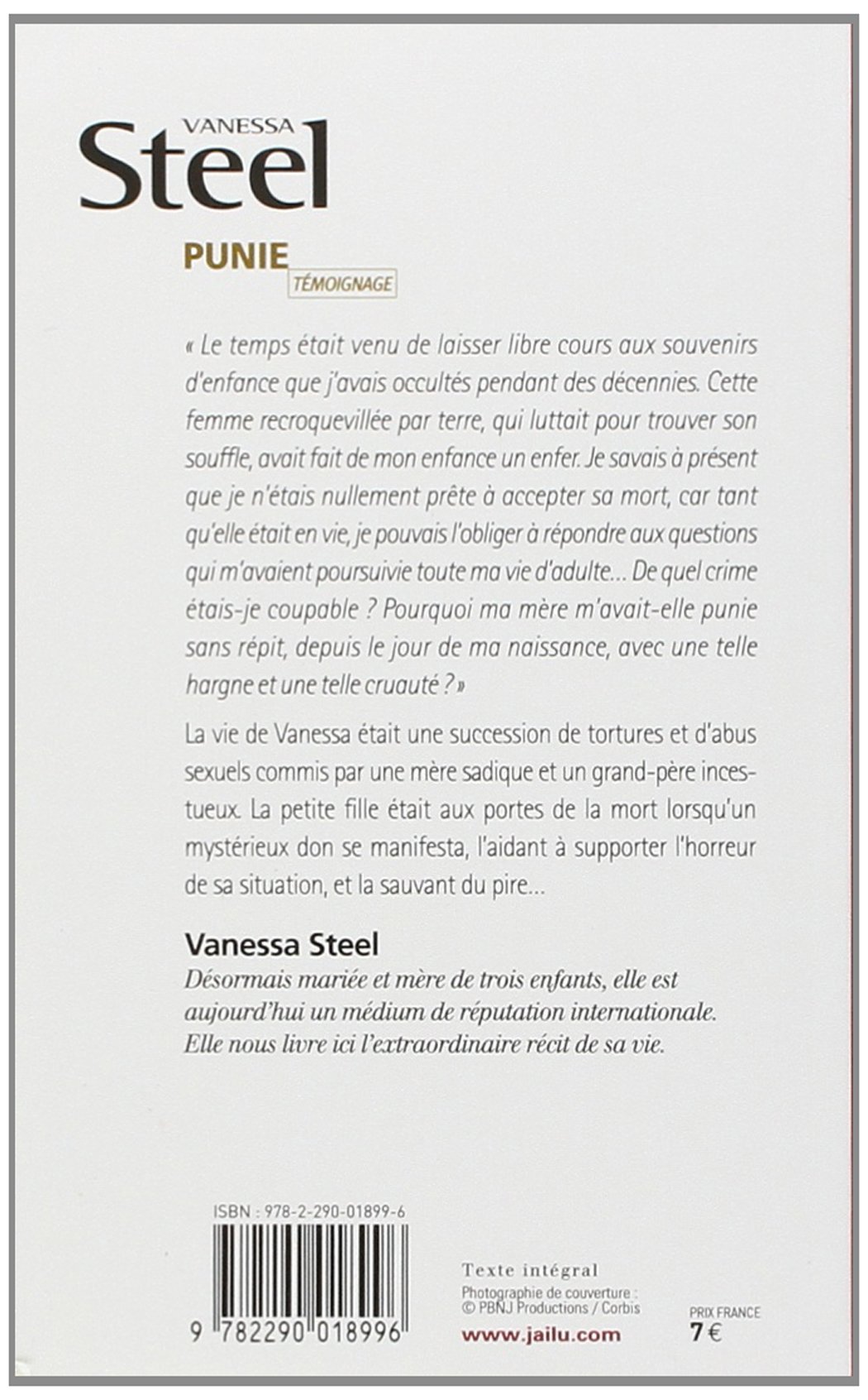 " Le temps était venu de laisser libre cours aux souvenirs d'enfance que j'avais occultés pendant des décennies. Cette femme recroquevillée par terre, qui luttait pour trouver son souffle, avait fait de mon enfance un enfer. Je savais à présent que je n'étais nullement prête à accepter sa mort, car tant qu'elle était en vie, je pouvais l'obliger à répondre aux questions qui m'avaient poursuivie toute ma vie d'adulte... De quel crime étais-je coupable ? Pourquoi ma mère m'avait-elle punie sans répit, depuis le jour de ma naissance, avec une telle hargne et une telle cruauté ?" La vie de Vanessa était une succession de tortures et d'abus sexuels commis par une mère sadique et un grand-père incestueux. La petite fille était aux portes de la mort lorsqu'un mystérieux don se manifesta, l'aidant à supporter l'horreur de sa situation, et la sauvant du pire...