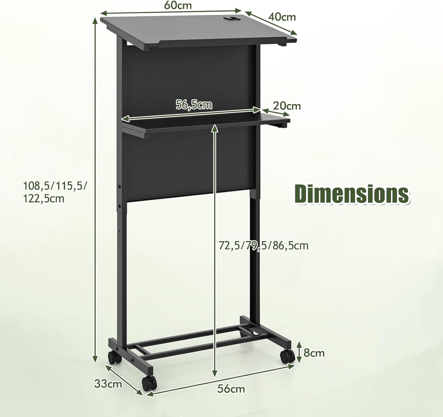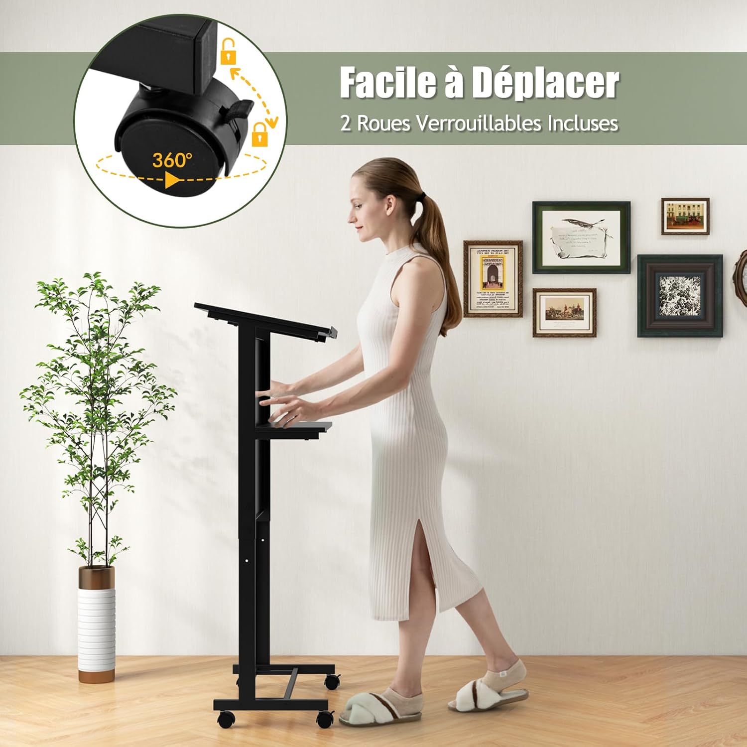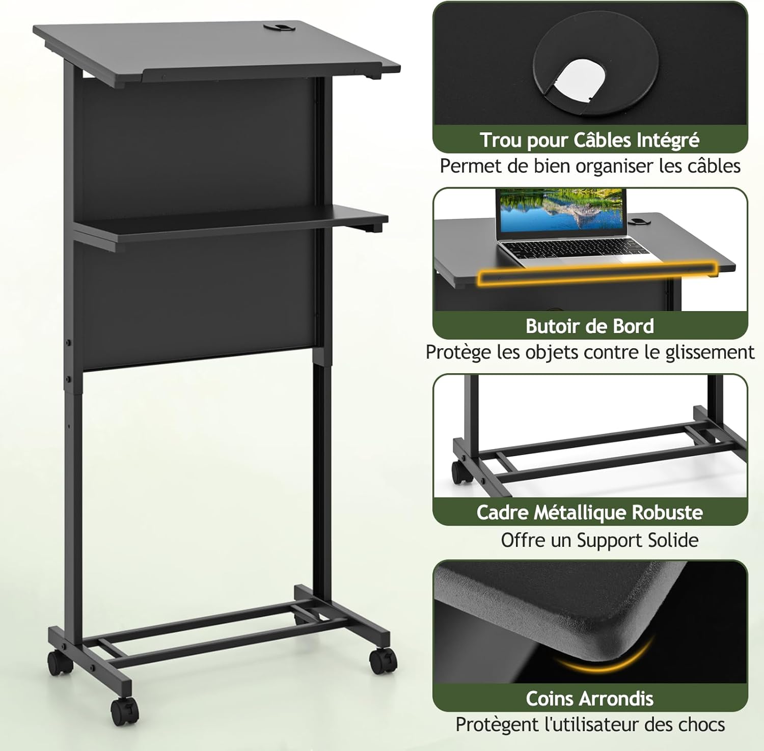 | Libellé | Pupitre mobile, chariot roulant réglable en hauteur pour ordinateur portable, cadre en métal, noir |