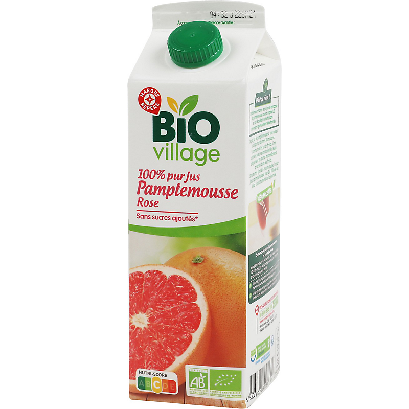 JUS DE PAMPLEMOUSSE ROSE ISSU DE L'AGRICULTURE BIOLOGIQUE BIO VILLAGE