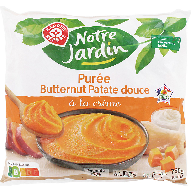 Purée de courge butternut et patate douce, cuisinée, surgelée NOTRE JARDIN