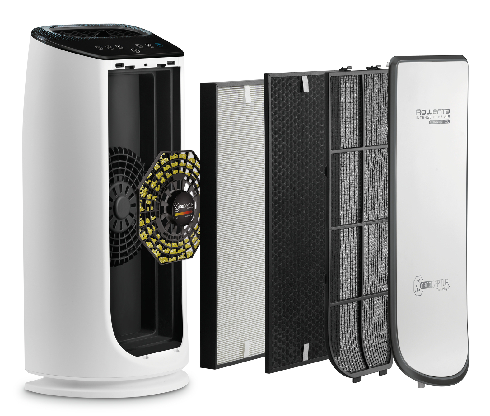 Grâce à son nouveau système de filtration à 4 niveaux, il capture jusqu'à 100 % des allergènes et particules fines. Exclusivité Rowenta : le formaldéhyde est définitivement capté et détruit.