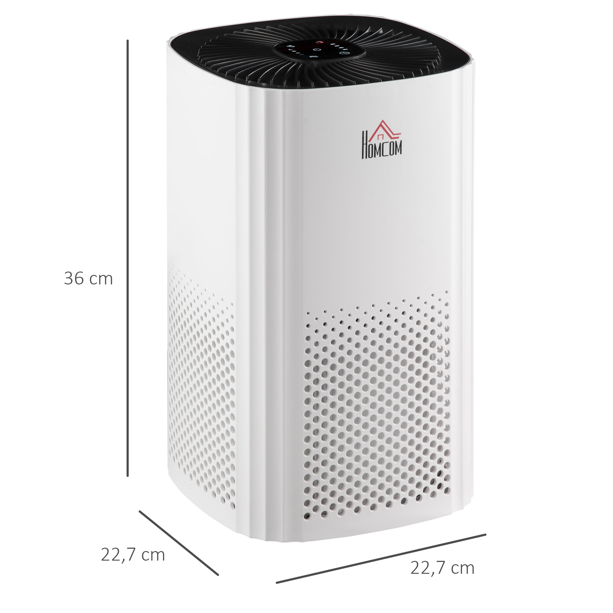 | Libellé | Purificateur d'air 25 W 4 vitesses mode silencieux - filtre HEPA, charbon actif - jusqu'à 24 m² - débit d'air pur 225 m³/h - timer - ABS blanc noir |