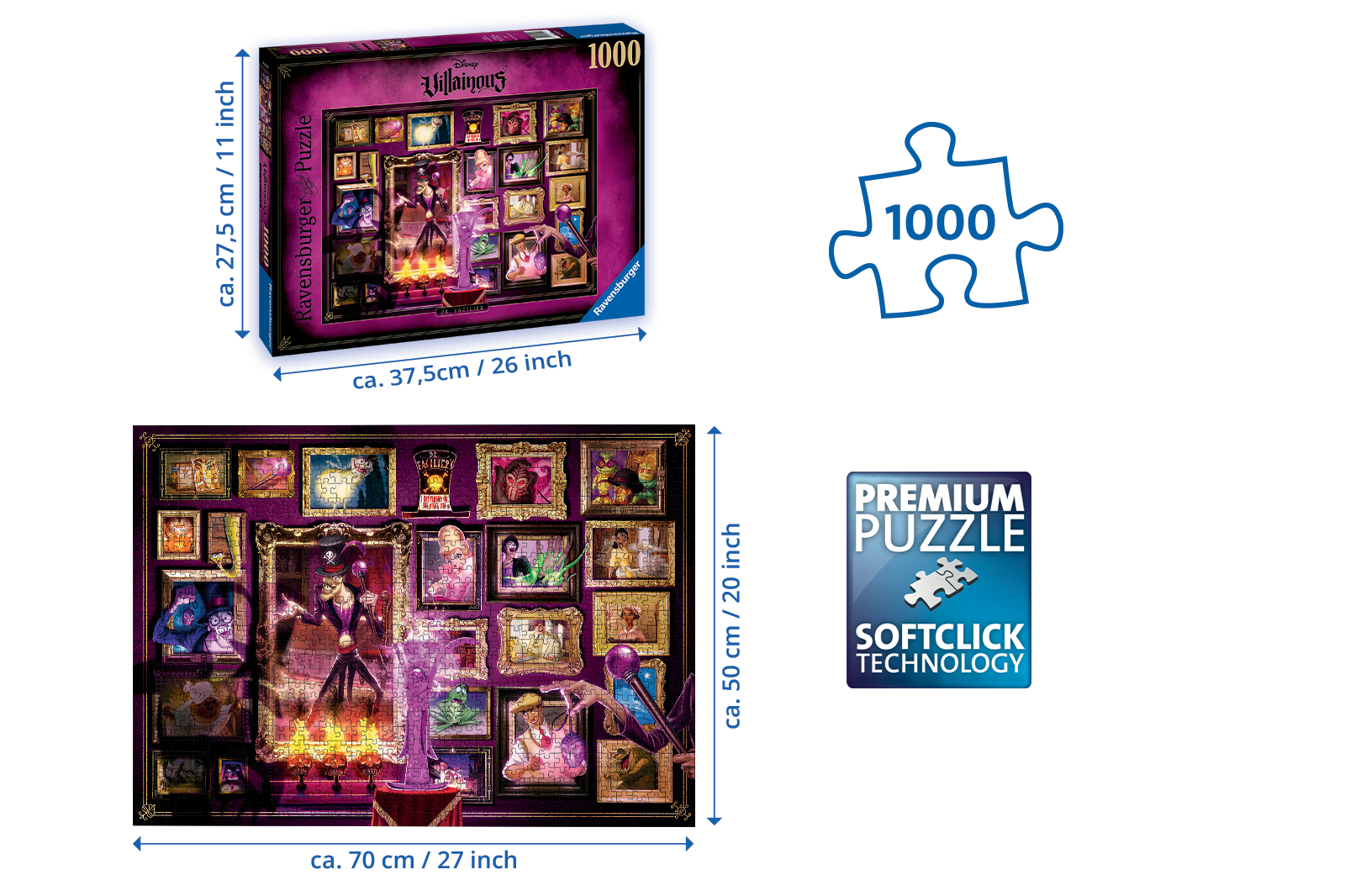 Pour les puzzleurs entraînés, le format 1000 pièces est idéal pour profiter de l'activité du puzzle, propice à la détente et à la relaxation. Chaque pièce a une forme unique et permet un assemblage parfait de l'image choisie. Inspirée du jeu de société Disney Villainous par Ravensburger, cette illustration exclusive met à l'honneur l'univers malfaisant et intriguant du Docteur Facilier, le célèbre méchant Disney de la Princesse et la Grenouille ! Pièce après pièce, révélez tous les détails des scènes les plus mémorables de ce dessin animé d'exception, et plongez dans l'univers mystérieux et rempli de magie noire du Docteur Facilier !