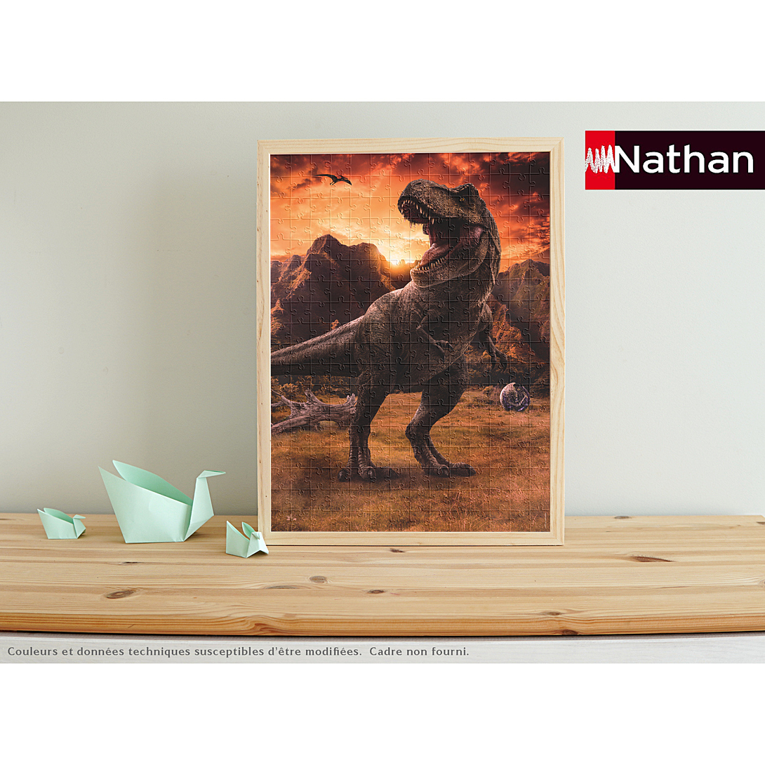 Plus produit LUDIQUE ET EDUCATIF : Les puzzles Nathan disposent d\'un trieur de pièces à 6 compartiments dans la boîte, ce qui permet à l\'enfant de pouvoir trier les pièces par forme et par couleurs dominantes. À 8 ans, l\'enfant apprend à maitriser la technique de réalisation d\'un puzzle ! DINOSAURES : Le tyrannosaurus Rex est l\'un des plus dangereux dinosaures, c\'est un terrible prédateur carnivore ! Dans la saga de film Jurassic World on retrouve Rexy le Tyrannosaurus Rex qui aura survécu à l\'Indominus rex, à une éruption sur l\'île ainsi qu\'à sa capture dans le manoir Lookwood ! CONTENU : 1 puzzle de 250 pièces, avec trieur de pièces inclus. Dimensions du puzzle : 49 x 36 cm. Une qualité de fabrication impeccable : matériau extra-épais et durable résistant aux nombreuses manipulations pour permettre de s\'amuser encore plus longtemps avec son puzzle ! ENVIRONNEMENT : Fabriqué en Europe, ce puzzle est composé de matériaux issus de forêts bien gérées certifiées FSC, de matériaux recyclés et de matériaux issus dautres sources contrôlées (FSC-C111262). De plus, nos puzzles sont garantis 2 ans à compter de la date d\'achat ! UN CADEAU IDEAL pour les enfants dès 8 ans. Les enfants seront ravis de recevoir ce puzzle pour Noël, un anniversaire ou juste pour le plaisir. Il permettra à l\'enfant de s\'initier de manière autonome au puzzle et/ou de permettre aux parents de partager un moment de convivialité et de détente avec leur enfant.