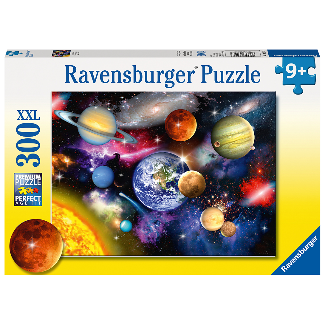 LUDIQUE ET EDUCATIF : Les puzzles 300 pièces XXL Ravensburger permettent aux enfants dès 9 ans de plonger dans un monde coloré sur leurs thèmes préférés. Ils pourront partir à la découverte du monde, admirer leurs animaux préférés dans les moindres détails ou encore voyager dans l'espace pièce après pièce. SYSTÈME SOLAIRE : Embarquez pour un voyage interstellaire grâce à ce puzzle de qualité qui ravira tous les fans d’espace et d’astronomie. Découvrez les planètes qui orbitent autour du soleil ainsi que des galaxies. Ce puzzle offrira aux filles comme aux garçons dès 9 ans une expérience de jeu ludique et éducative autour du système solaire. CONTENU : 1 puzzle de 300 pièces XXL. Dimensions du puzzle : 49 x 36 cm. Une qualité de fabrication impeccable : matériau extra-épais et durable adapté aux mains des jeunes enfants et résistant aux nombreuses manipulations pour permettre de s'amuser encore plus longtemps avec son puzzle !