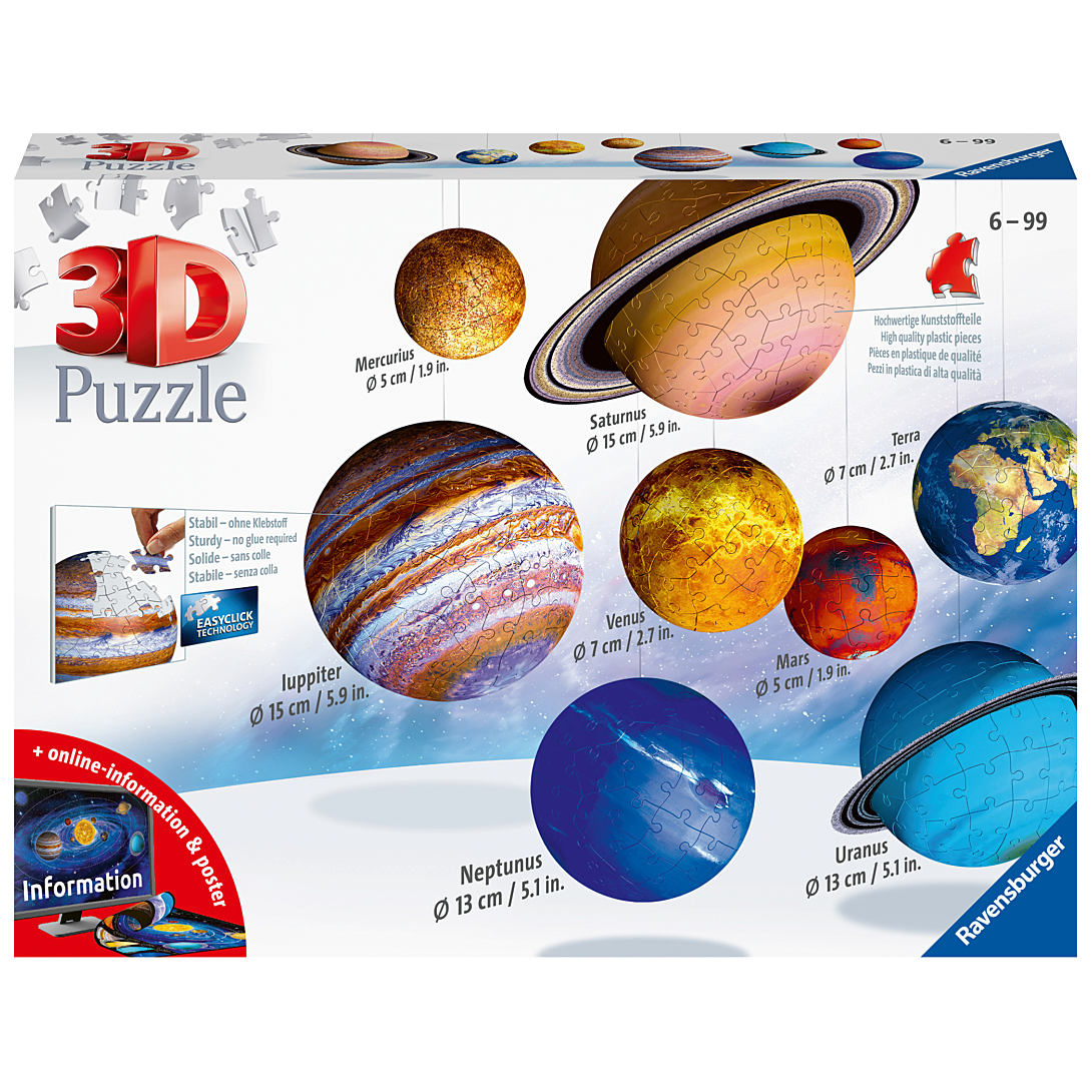 8 puzzles ronds de différentes dimensions pour reconstituer le système solaire.