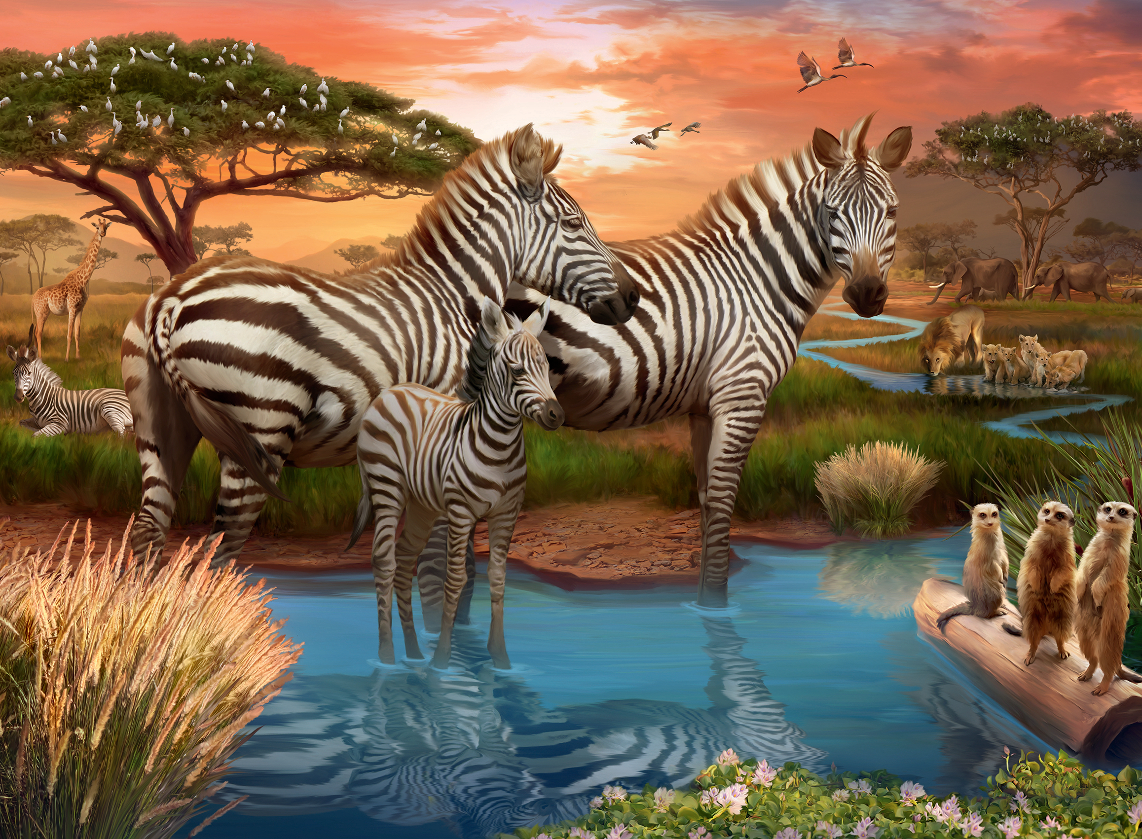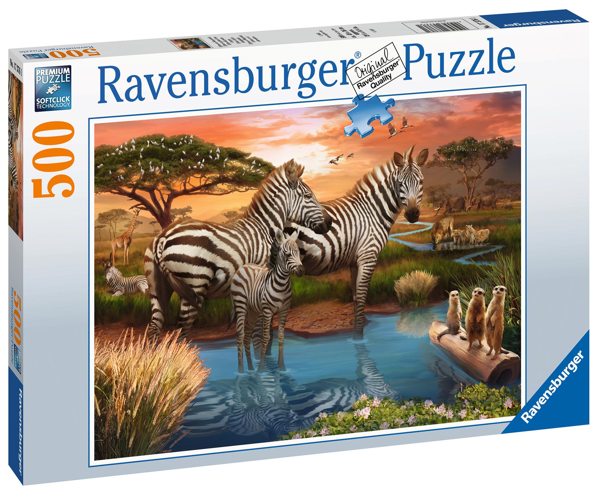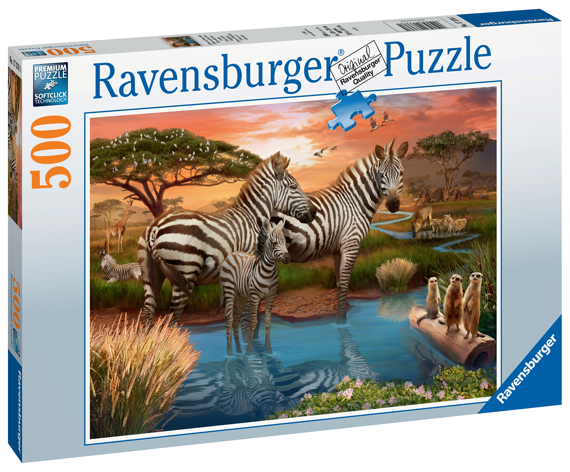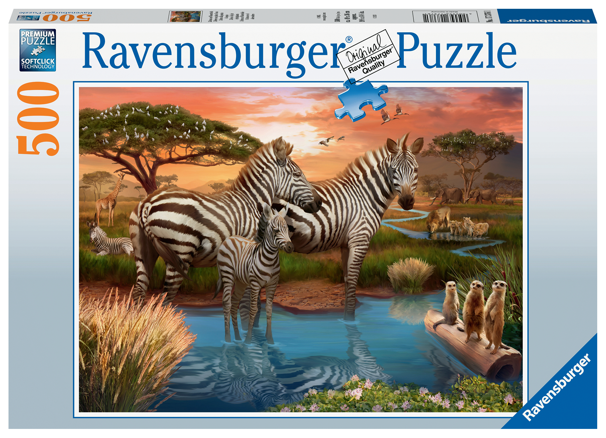 Libellé Puzzle 500 p - Zèbres au plan d'eau