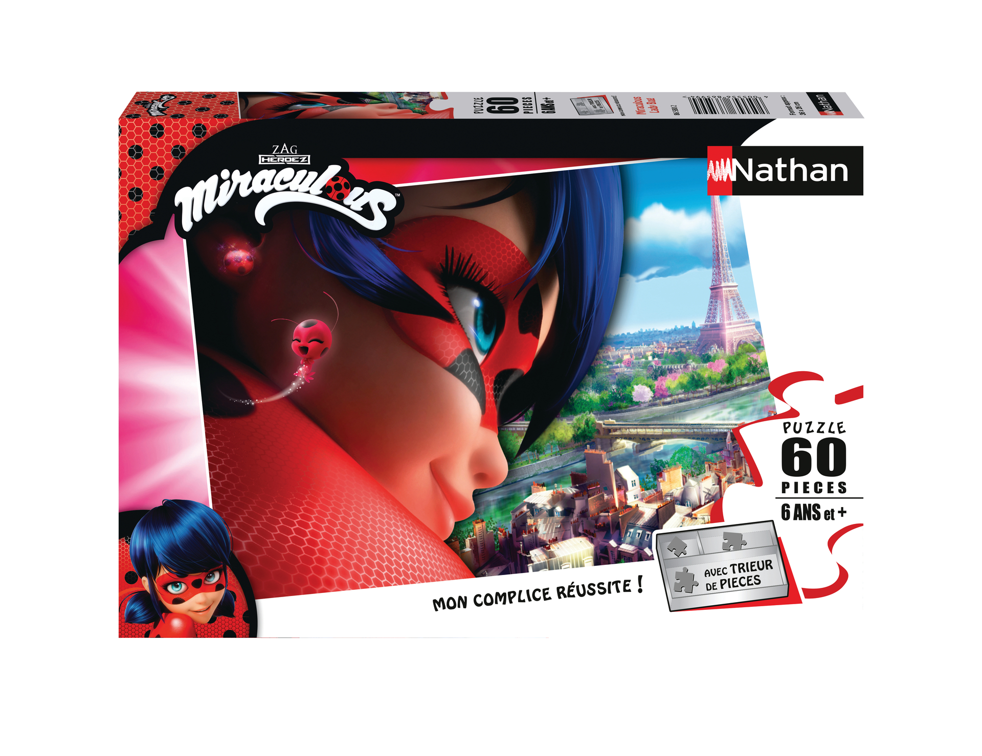 | Plus produit | LUDIQUE ET EDUCATIF : Les puzzles 60 pièces Nathan disposent d\'un trieur de pièces à 3 compartiments dans la boîte qui permet à l\'enfant d\'apprendre à trier plus facilement les pièces par forme et par couleur. L\'enfant développe en toute autonomie dès 6 ans son esprit logique et sa concentration ! MIRACULOUS : Retrouvez Labybug sur ce puzzle unique aux couleurs vibrantes ! Marinette est une jeune fille tout à fait normale jusqu\'à ce qu\'elle se transforme en super-héroïne Ladybug. Elle lutte contre Papillon et tous les autres méchants pour sauver la ville de Paris ! CONTENU : 1 puzzle de 60 pièces, avec 1 trieur de pièces à 3 compartiments inclus pour apprendre à trier les pièces. Dimensions du puzzle : 36 x 26 cm. Service Après Vente : Nos puzzles sont garantis 2 ans à compter de la date d\'achat pour toutes pièces manquantes ! ENVIRONNEMENT : Fabriqué en Europe, ce puzzle est composé de matériaux issus de forêts bien gérées certifiées FSC, de matériaux recyclés et de matériaux issus dautres sources contrôlées (FSC-C111262). Une qualité de fabrication impeccable : matériau extra-épais et durable résistant aux nombreuses manipulations pour s\'amuser encore plus longtemps! UN CADEAU IDEAL pour les enfants dès 6 ans. Les enfants seront ravis de recevoir ce puzzle pour Noël, un anniversaire ou juste pour le plaisir. Il permettra à l\'enfant de s\'initier de manière autonome au puzzle et/ou de permettre aux parents de partager un moment de convivialité et de détente avec leur enfant. |