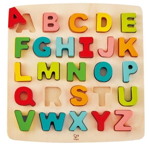 Puzzle CHUNKY ALPHABET de Hape. A, B, C, D ! C’est amusant d’apprendre l’alphabet ! Peux-tu apprendre les lettres jusqu’à Z ? Ce puzzle coloré introduit les lettres majuscules à l’enfant pour faire les premiers pas vers l’apprentissage de la lecture et de l’écriture.