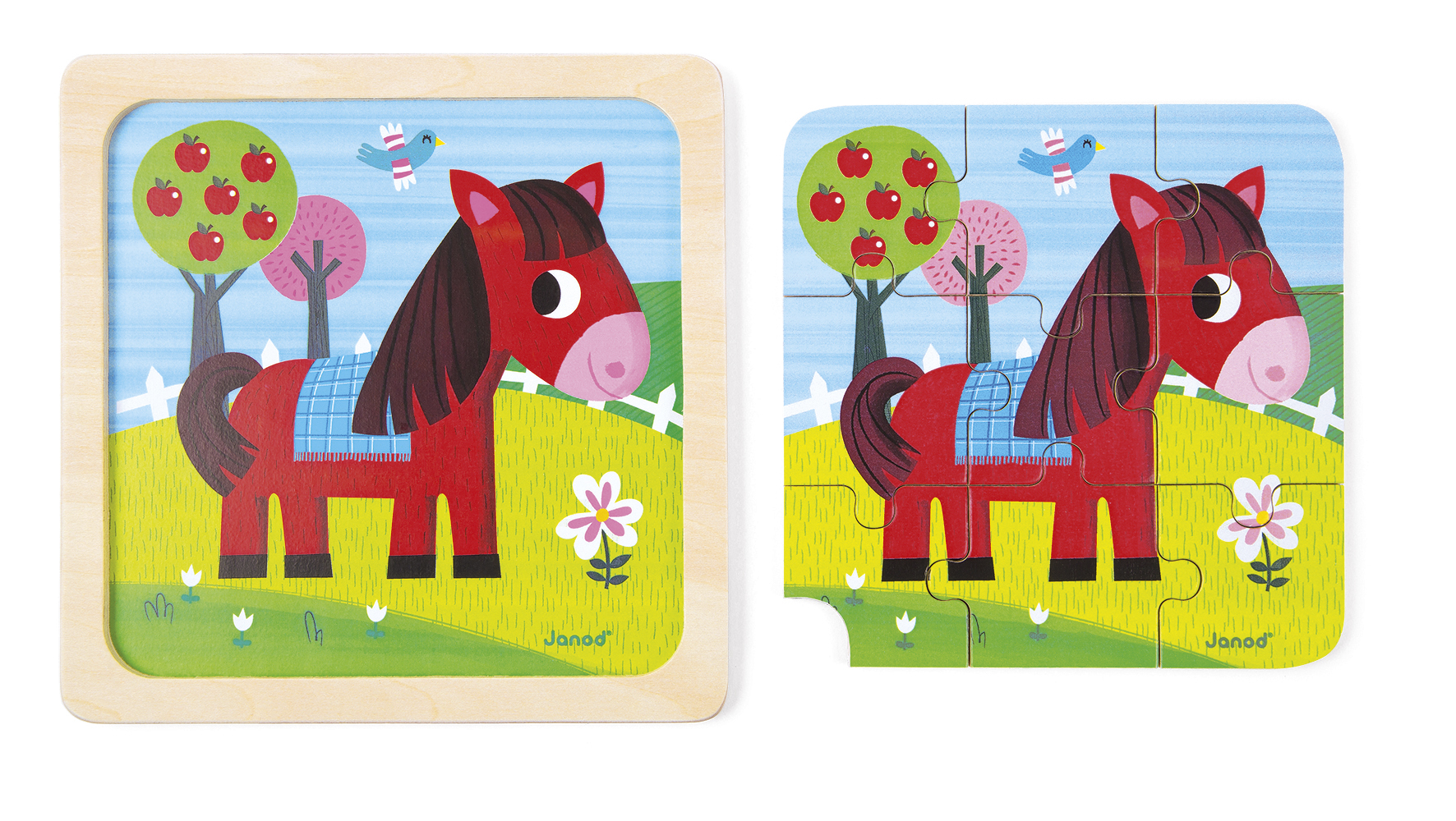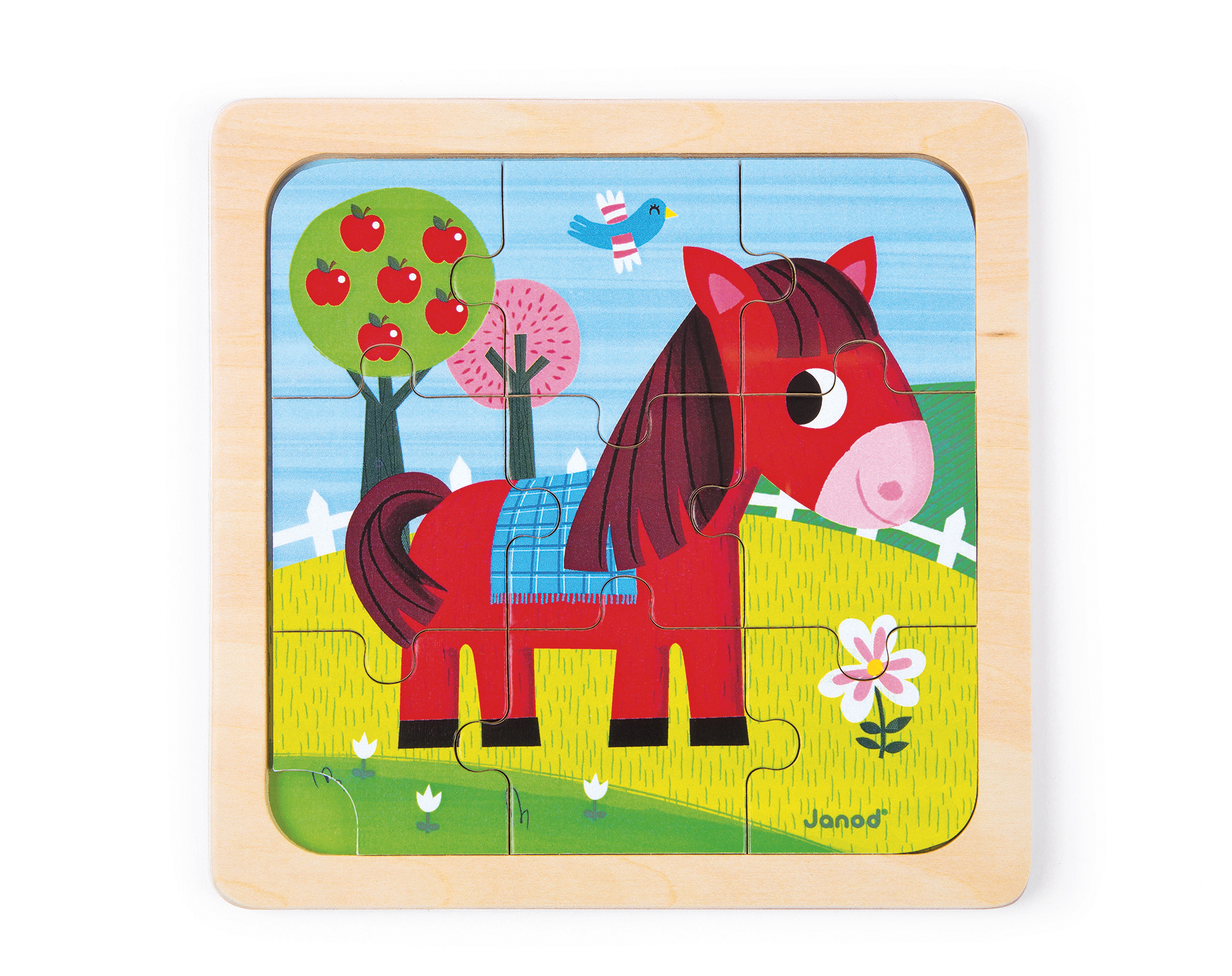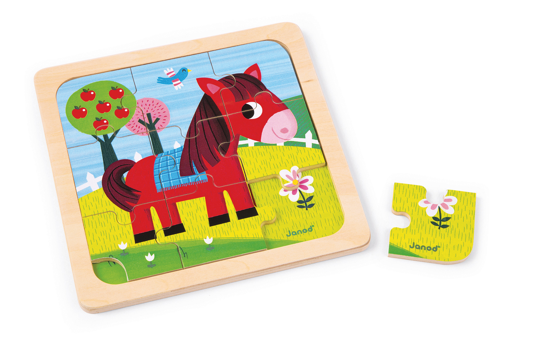 Ce joli puzzle en bois à 9 pièces contient un modèle imprimé sur le support, ce qui aidera bébé à recomposer plus facilement son puzzle. Tout en s’amusant, votre enfant développera sa motricité et son imagination. Encoche pour retirer les pièces plus facilement. Bois contreplaqué avec impression en transfert à chaud (idéal pour le 1er Age). Livré filmé