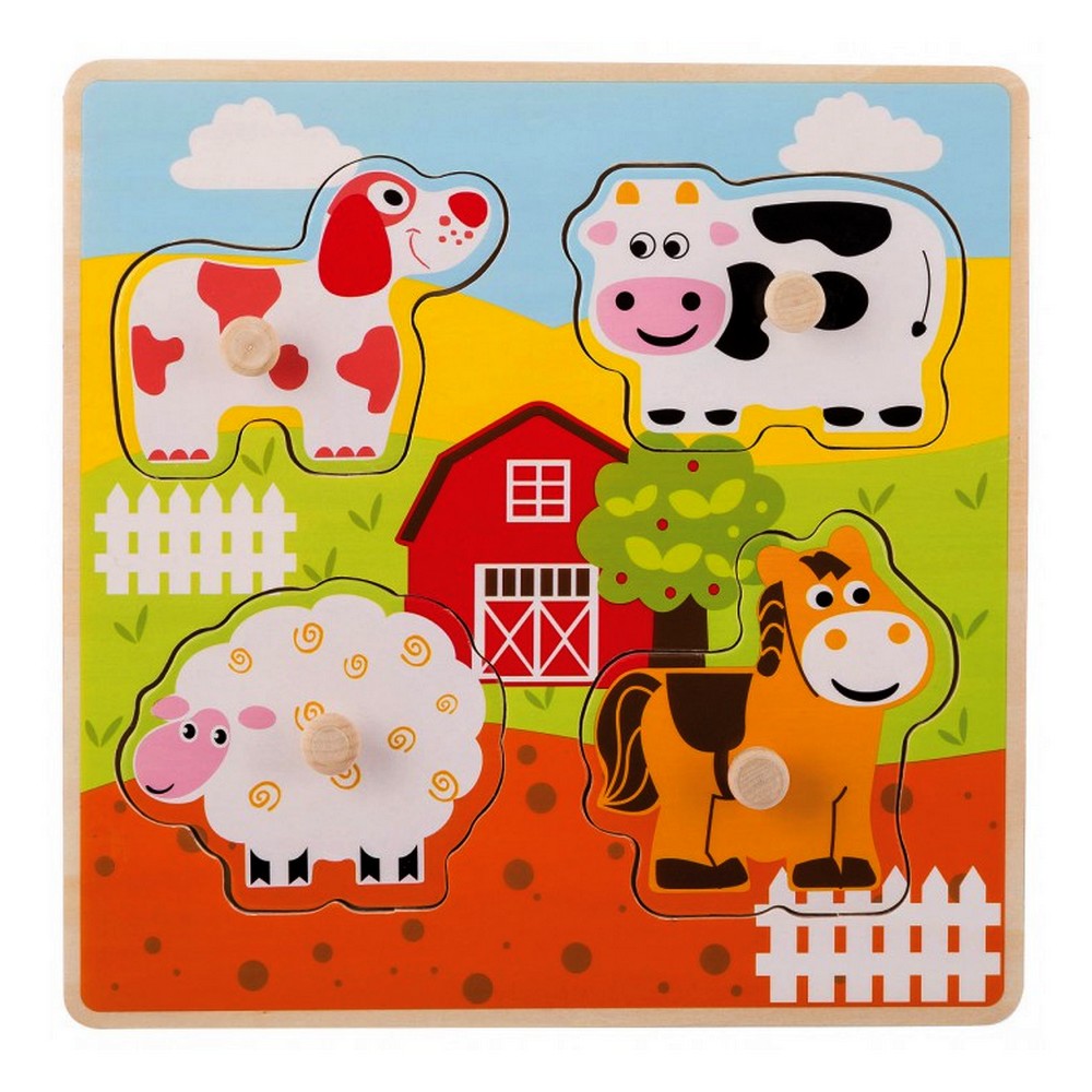 Puzzle en bois ecologique bebe enfant 4 piece ferme