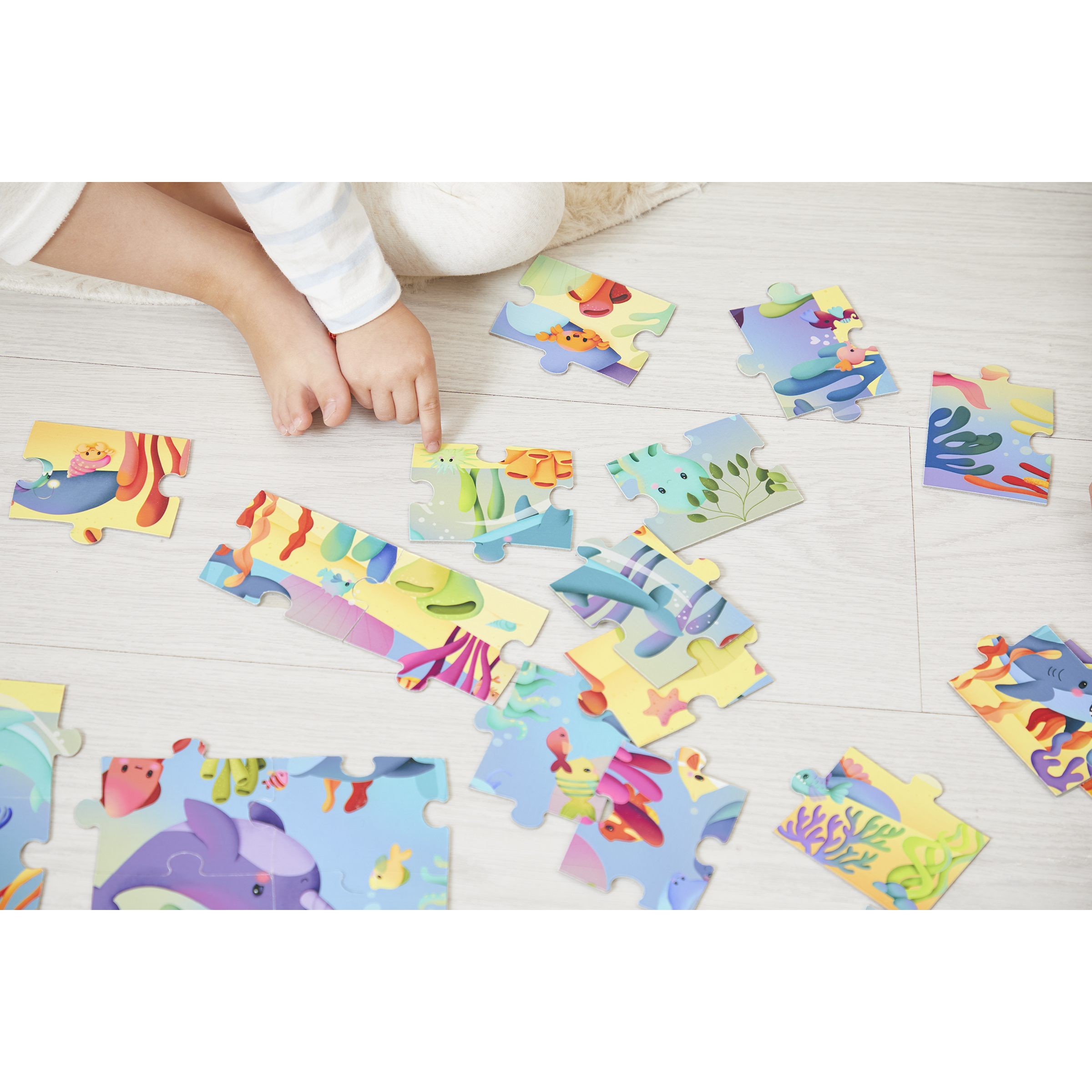 Venez découvrir les profondeurs de l'océan et les animaux qui s'y cachent ! Composé de 36 pièces, ce joli puzzle panoramique en carton sur le thème des animaux marins permettra à votre enfant de s'amuser à reconnaître les différents animaux aquatiques. 1 poster est également inclus pour aider votre enfant dans la réalisation de ce puzzle. Il est facilement transportable grâce à sa jolie valisette. Ce puzzle est idéal pour développer la patience et la motricité fine. Puzzle fabriqué en France, certifié FSCTM et à base d'encres végétales. Puzzle pour les enfants à partir de 4 ans.