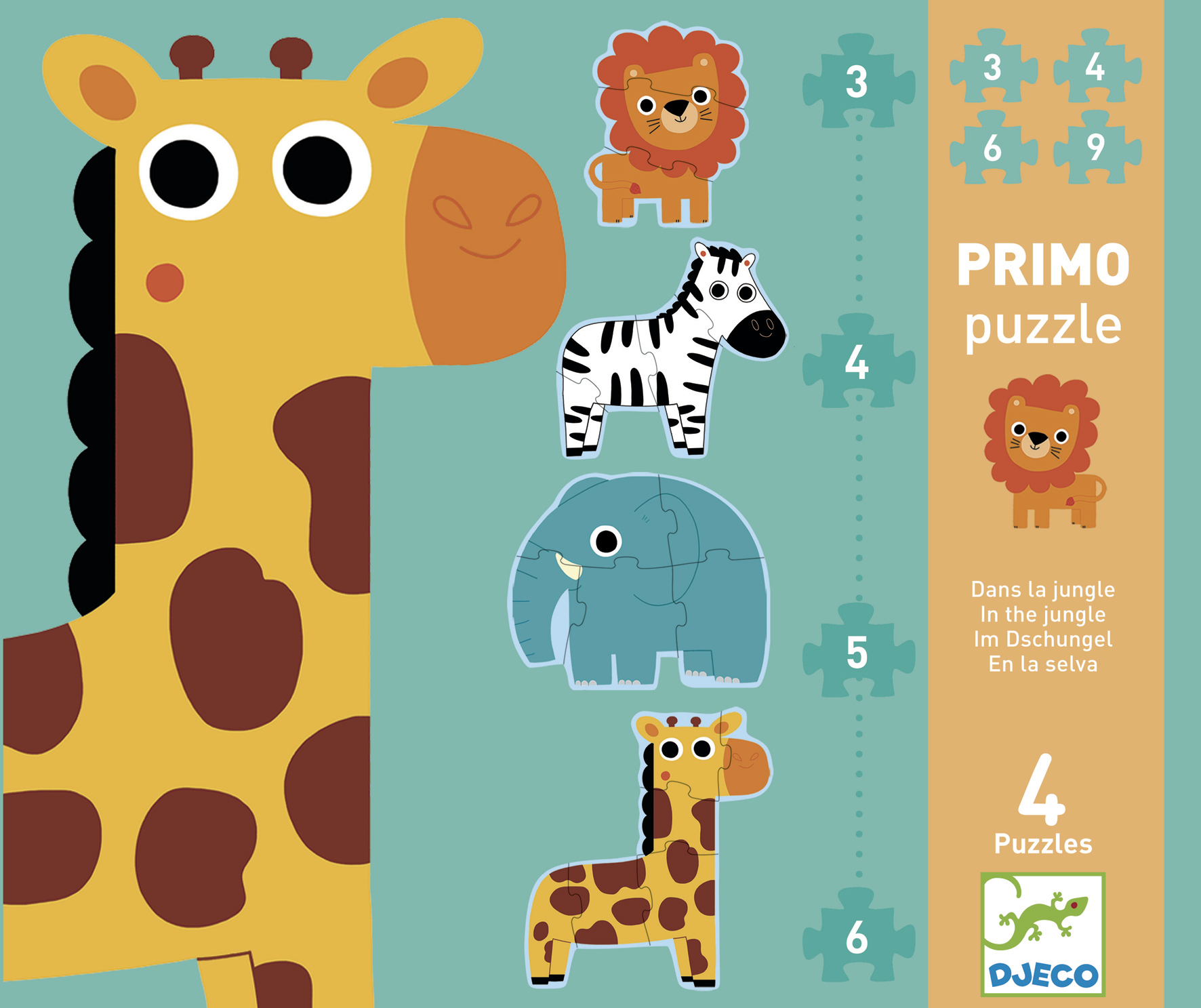 4 puzzles évolutifs de 3/4/5 et 6 pièces spécialement conçus pour les plus petits à partir de 2 ans.