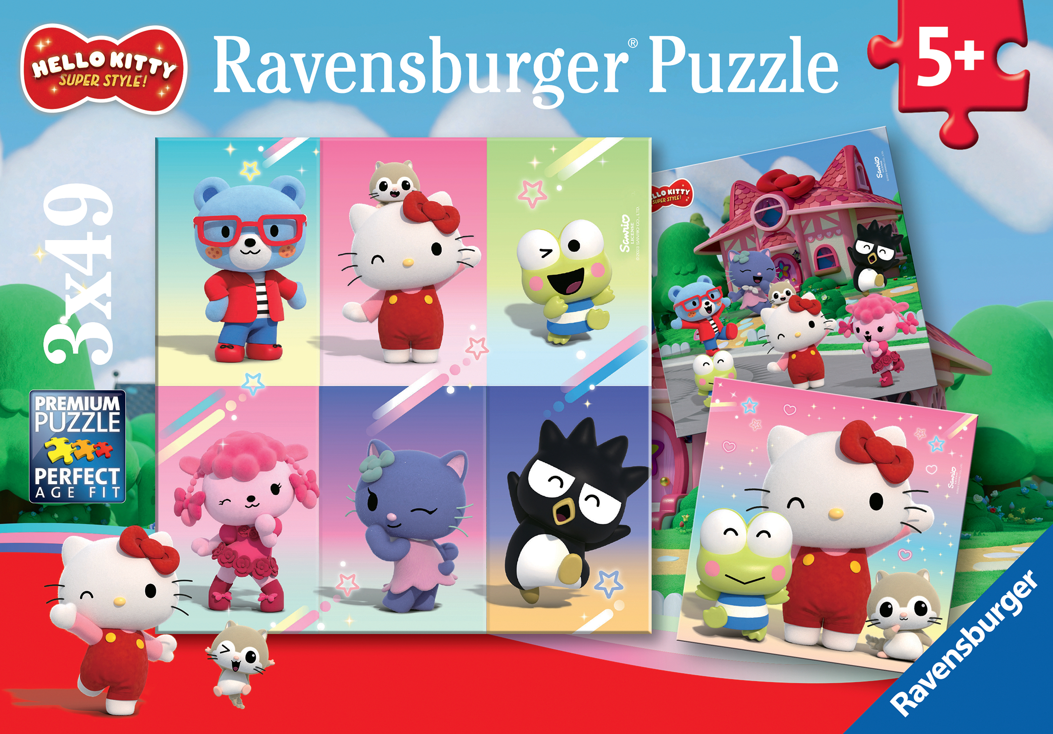 La boîte contient 3 puzzles de 49 pièces chacun, 3 posters à taille réelle en couleurs