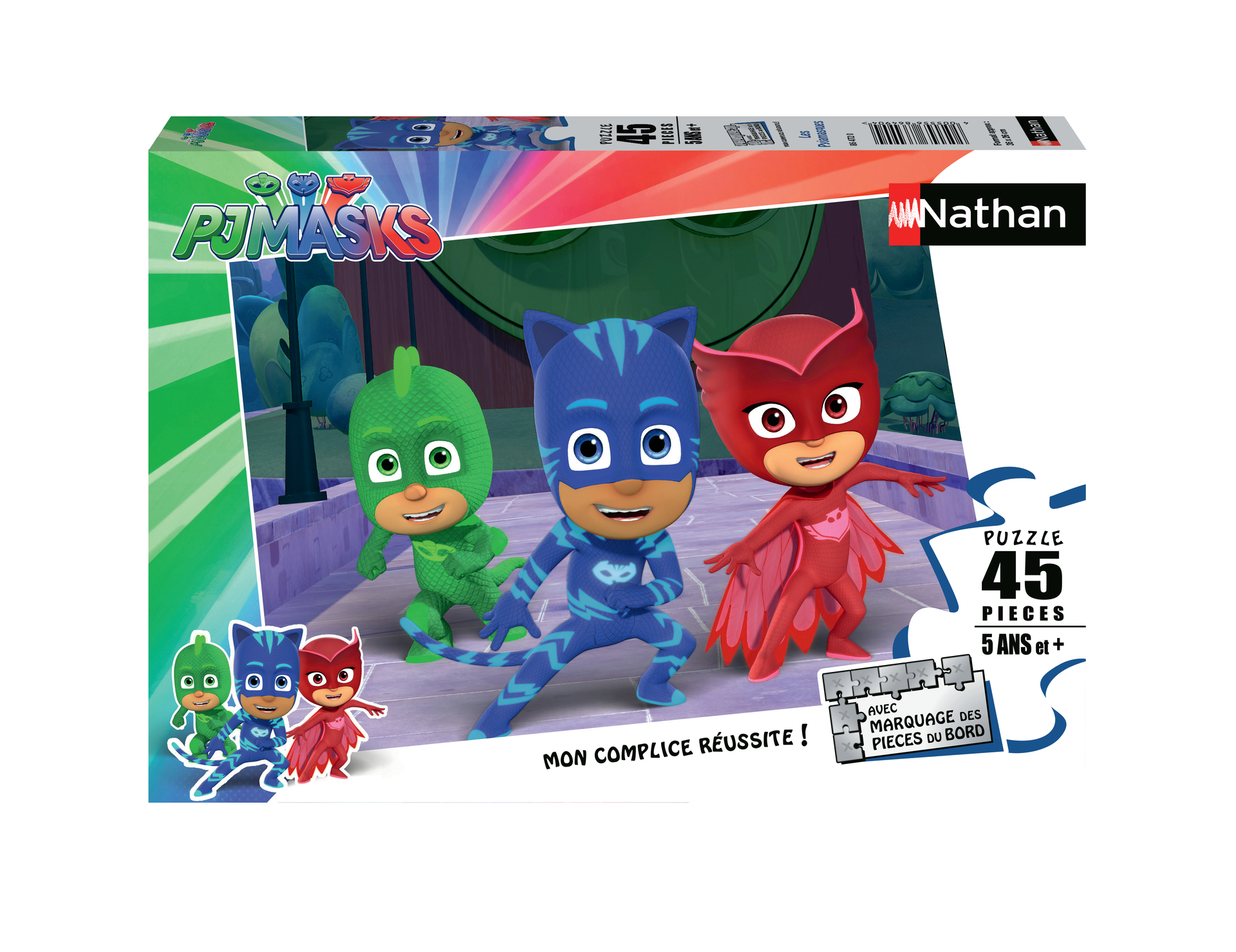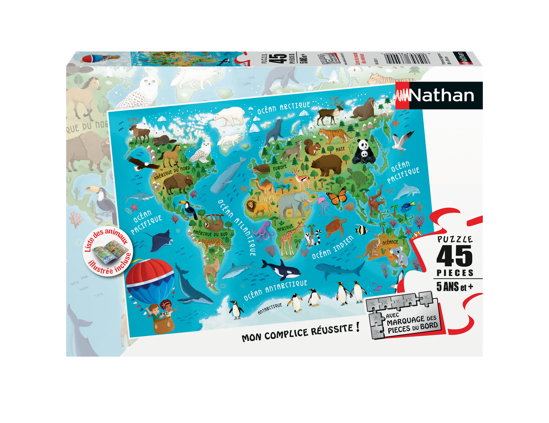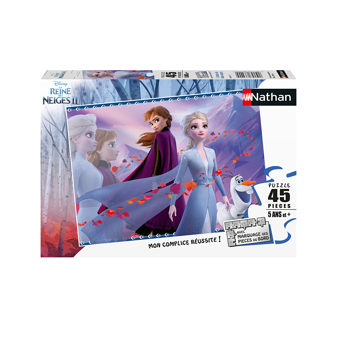 Le puzzle, jeu éducatif par excellence, permet à l'enfant de faire ses premières découvertes en développant sa coordination visuelle et motrice et en aiguisant sa curiosité et son esprit logique. Parce que nous souhaitons donner goût au savoir et distraire intelligemment, nous avons mis au point une gamme de puzzles qui accompagnera votre enfant dans toutes les étapes de son développement. A 5 ans, l'enfant se perfectionne dans l'observation du détail et s'initie à l'organisation dans l'espace. Le puzzle 45 pièces est un format idéal pour évoluer dans l'univers de ses héros préférés. Le petit plus Nathan, c'est le poster à taille réelle des formes des pièces, qui permet de bien les positionner lors de l'assemblage. En plus, le marquage des pièces du bord permet à l'enfant de repérer du premier coup d'oeil les pièces avec lesquelles il faut commencer.