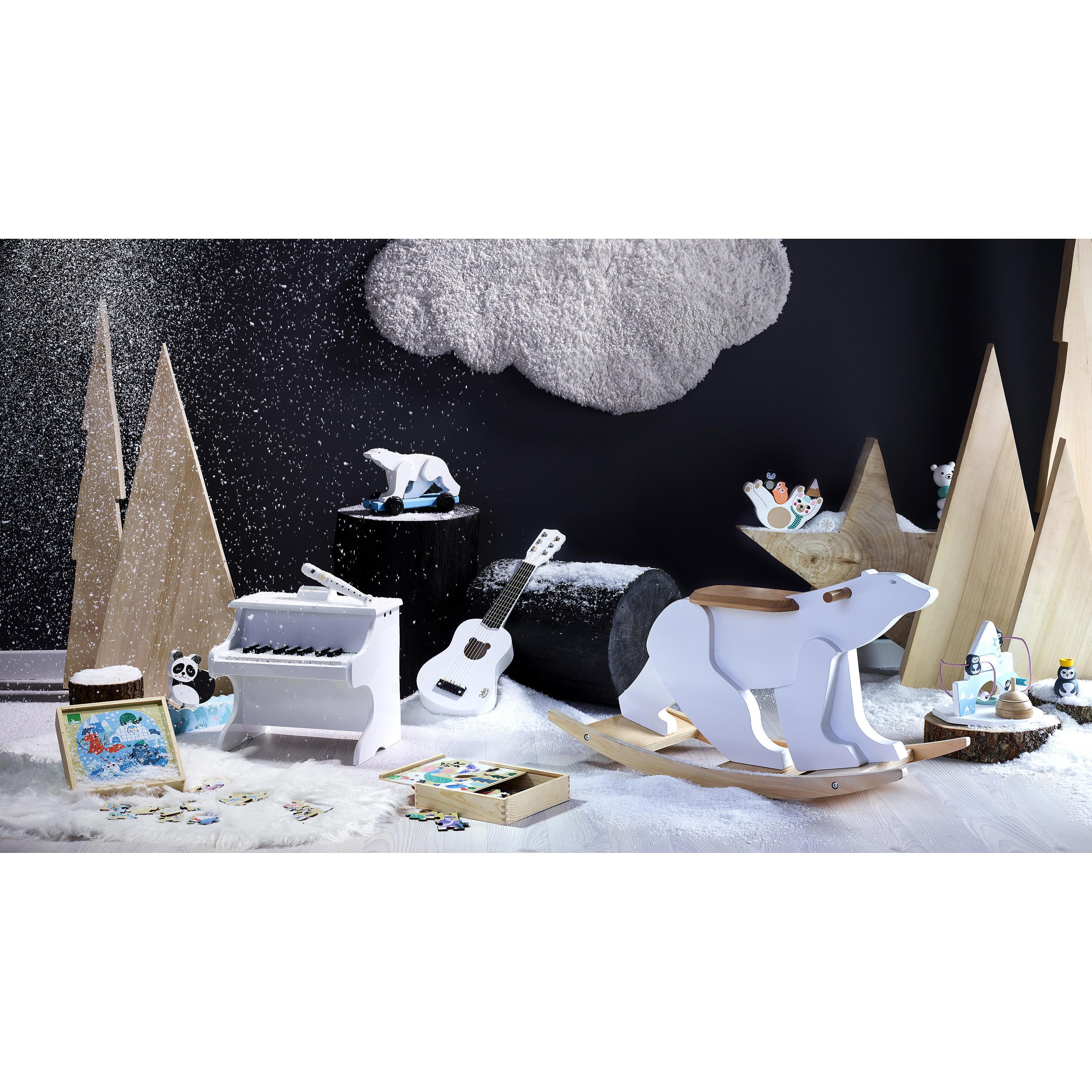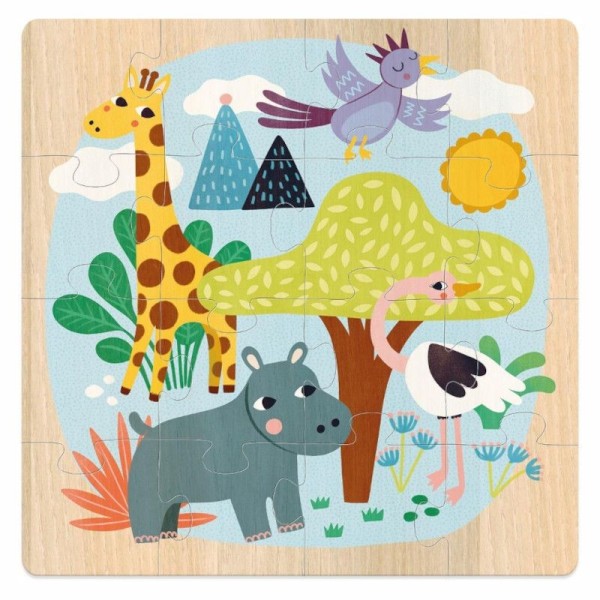 Un magnifique coffret de 3 puzzles en bois. Illustrés avec poésie par Michelle Carlslund, ces trois puzzles représentent trois scènes avec des animaux du monde dans des habitats variés. Retrouvez la jolie girafe et ses amis l'hippo, l'autruche et l'oiseau dans la savane. Le lapin malin, les petits canards surveillés par l'ours et leurs amis siffleurs dans la forêt. Enfin retrouvez le renard des neige, le beluga et leurs amis l'ours, la tortue et le phoque sur la banquise. Ces puzzles favoriseront l'apprentissage de la dextérité et de l'observation. Vilac 8530 - Puzzles - Jouet en bois - Dès 4 ans. Contenu : 3 puzzles de 16 pièces chacun. Illustrations Michelle Carlslund.