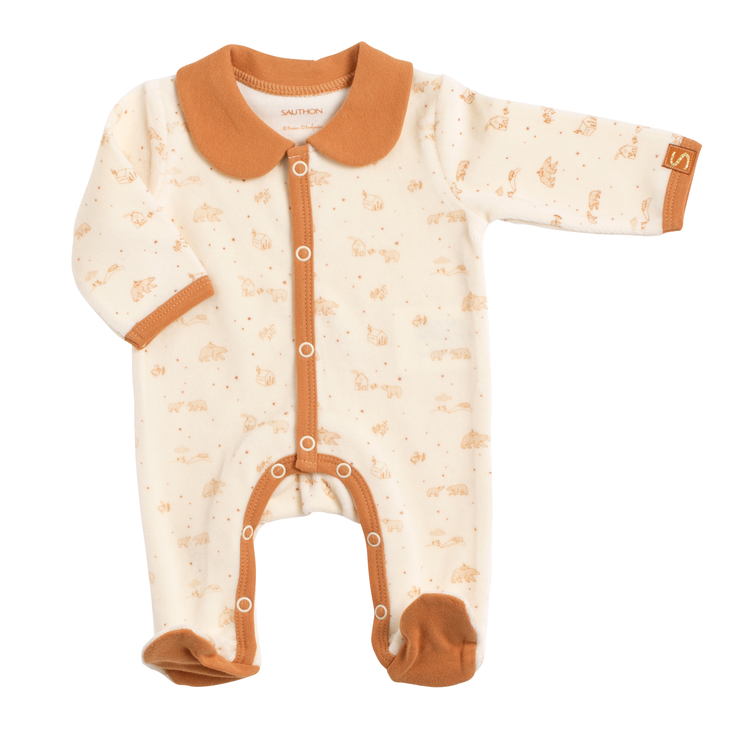 A la naissance, il est essentiel de maintenir bébé au chaud. Les pyjamas Sauthon en bouclette velours et ouverture sur le côté préservent le confort et la chaleur des tout-petits. Le pyjama Orsino vous séduira grâce à son motif Ours tendre et délicat et sa couleur terracotta très chaleureuse. Certifié Oeko-tex Standard 100, ce label garantit l'absence de substance nocive ou irritante pour la peau.