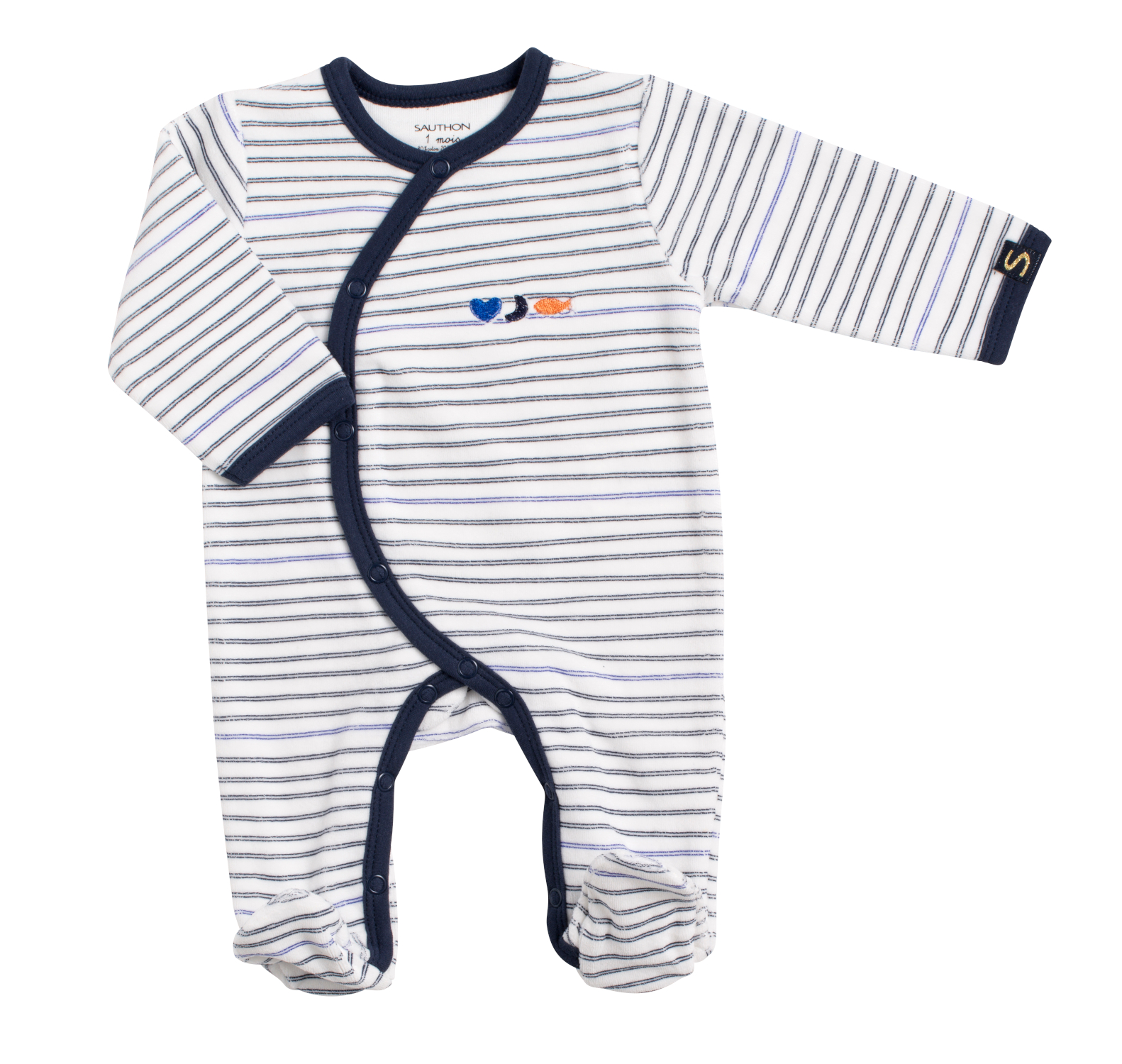 A la naissance, il est essentiel de maintenir bébé au chaud. Les pyjamas Sauthon en bouclette velours et ouverture sur le côté préservent le confort et la chaleur des tout-petits. Le pyjama Baby Sailor vous séduira grâce à ses rayures légères dans le style marinière et ses couleurs bord de mer. Certifié Oeko-tex Standard 100, ce label garantit l'absence de substance nocive ou irritante pour la peau.