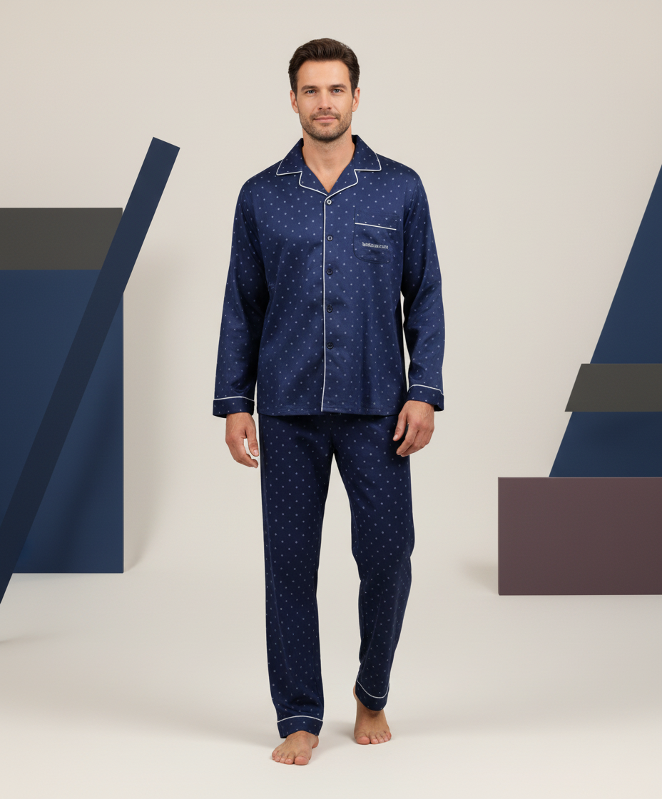 Pyjama Homme Hiver Polaire – Doux, chaud et élégant Cet ensemble de pyjama a été conçu pour offrir un confort optimal pendant les nuits froides. Sa matière polaire 95% polyester et 5% spandex apporte une grande douceur au toucher, une excellente élasticité et une respirabilité maîtrisée, idéale pour un sommeil paisible. Haut de pyjama intégralement imprimé – Col chemise raffiné, ouverture complète à 5 boutons. – Facile à enfiler, particulièrement apprécié par les seniors ou en milieu hospitalier. – Poche poitrine brodée “Sweet Secret”, finition premium. – Motifs imprimés sur l’ensemble pour un style chic et intemporel. Pantalon confortable et extensible – Taille élastiquée douce assurant un maintien agréable. – Matière polaire souple pour un confort maximal. – Motifs assortis au haut pour une tenue harmonieuse. Un pyjama pensé pour l’hiver Grâce à son toucher velours, son élasticité et sa chaleur douce, ce pyjama accompagne parfaitement les soirées cocooning et garantit un confort supérieur tout au long de la nuit. Disponible en bleu, bleu marine et gris, du M au XXXL, il répond à toutes les morphologies tout en conservant élégance et praticité.