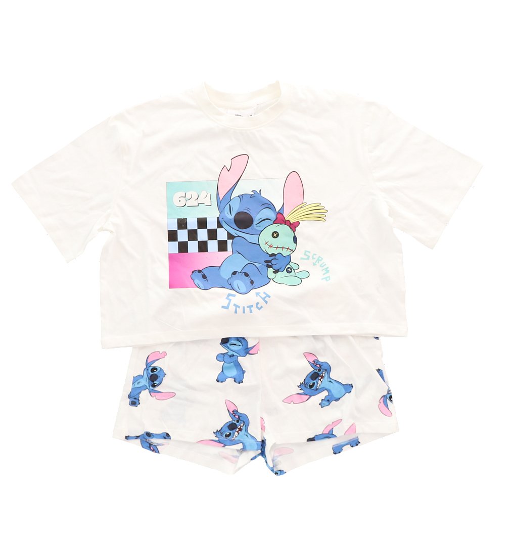 Pyjama short fille Stitch - DISNEY - Ecru - Jersey 100% Coton