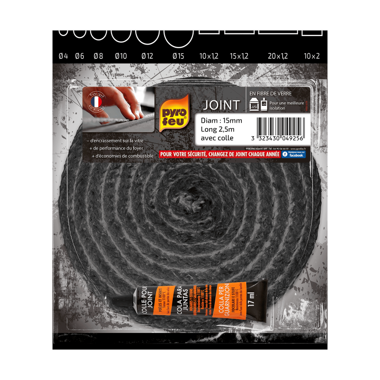 Libellé Pyrofeu - Joint Noir en Fibre de Verre - Diamètre 15, 2m50 - Résiste à 500°C - F