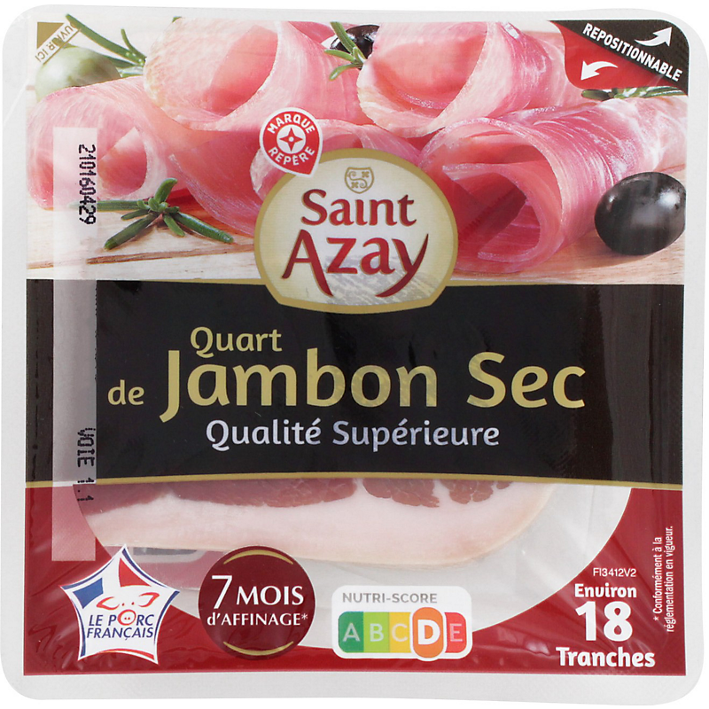 Quart de jambon sec tranché 18 tranches - 220 g - SAINT-AZAY