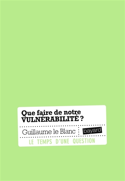 | Titre de l'œuvre | Que faire de notre vulnérabilité ? |