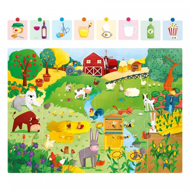 à partir de 2 à 5 ans moins de 30 min +1 joueur(s) Qui est-ce qui produit le miel ? D'où vient la laine ? Et comment obtient-on du pop-corn ? Assemble ce grand puzzle de la ferme et manipule les tirettes : tu découvriras de nombreuses curiosités sur l'origine de certains produits naturels de manière originale et amusante !