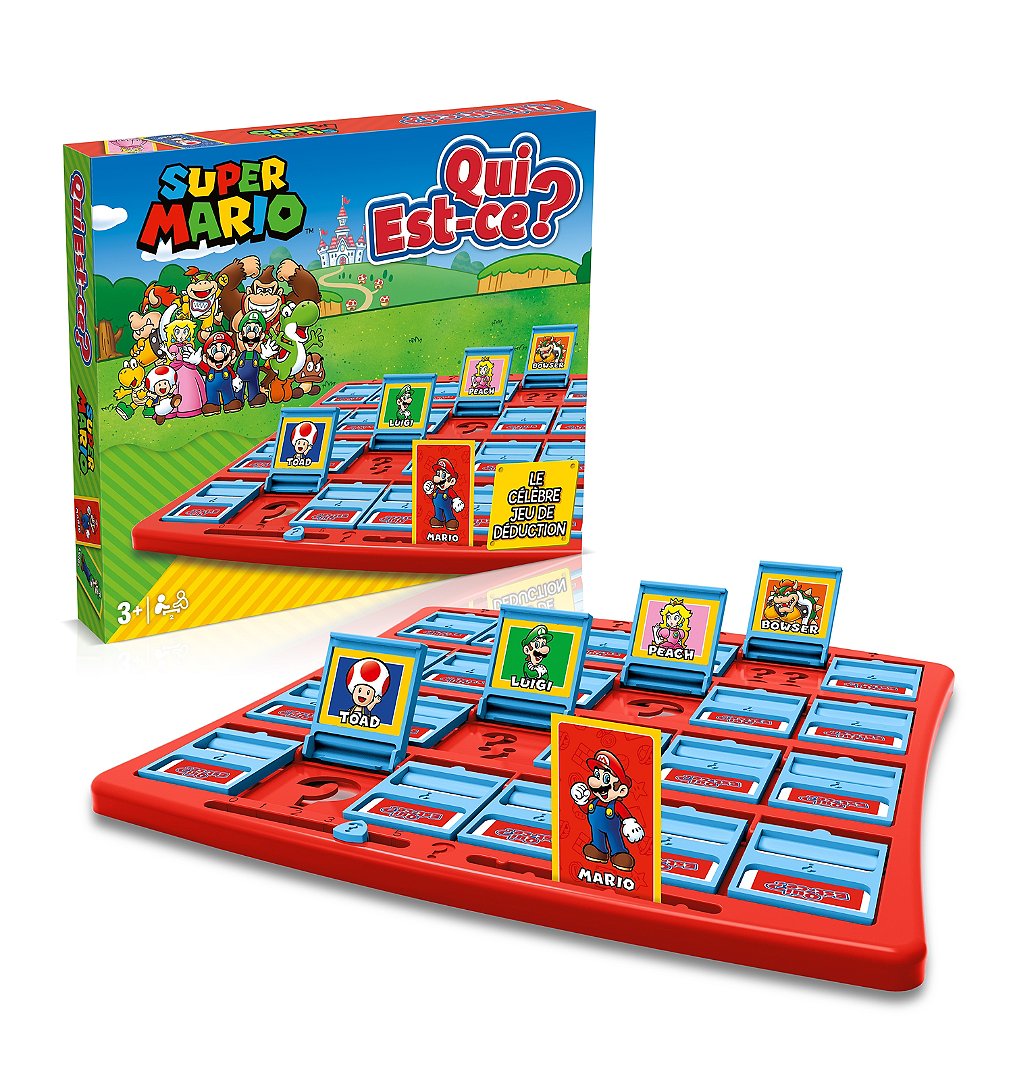Le célèbre jeu de déduction débarque chez Nintendo. Retrouve les personnages de SUPER MARIO et tente de deviner celui que cache ton adversaire. 24 personnages issus du jeu vidéo t'attendent dans ce Qui est-ce ?, de Luigi à Toad en Passant par Browser. Alors, assure toi de poser les bonnes questions pour gagner la partie !