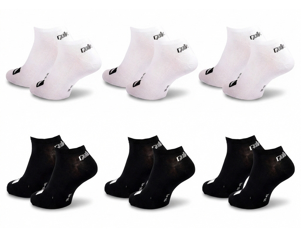 Adoptez le style surfwear des le plus jeune age avec ce pack 6 chaussettes enfant Quiksilver au format sneaker Ces socquettes courtes disposent dune tige courte qui sarrete strictement sous la cheville laissant la malleole visible pour un rendu moderne et estival Ideales avec des baskets basses ou des sneakers elles offrent un look dynamique inspire de lunivers surf skate et lifestyle californien Confectionnees en coton majoritaire elles garantissent douceur et respirabilite au quotidien Lajout de polyester renforce la resistance tandis que lelasthanne assure elasticite et maintien optimal Le talon forme epouse naturellement larriere du pied et la pointe renforcee ameliore la durabilite meme en usage intensif Le bord cote elastique maintient la chaussette en place sans glisser Disponibles en 27 30 31 35 et 36 39 ce pack polyvalent est pense pour lecole le sport et les vacances des enfants actifs