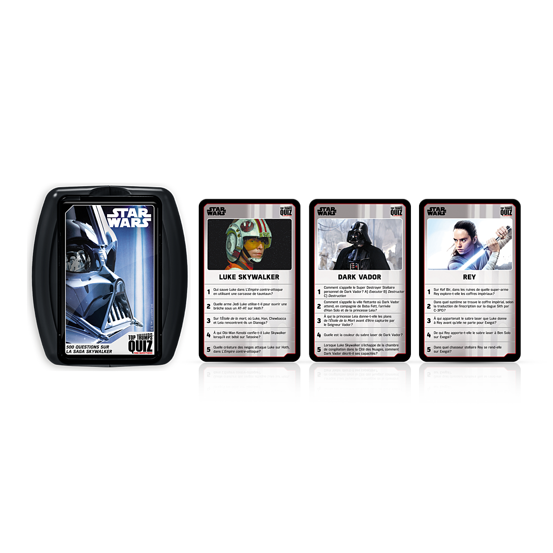 Jouez en famille ou entre amis avec ce Quiz 500 questions illustrées et testez vos connaissances sur l'univers de Star Wars.