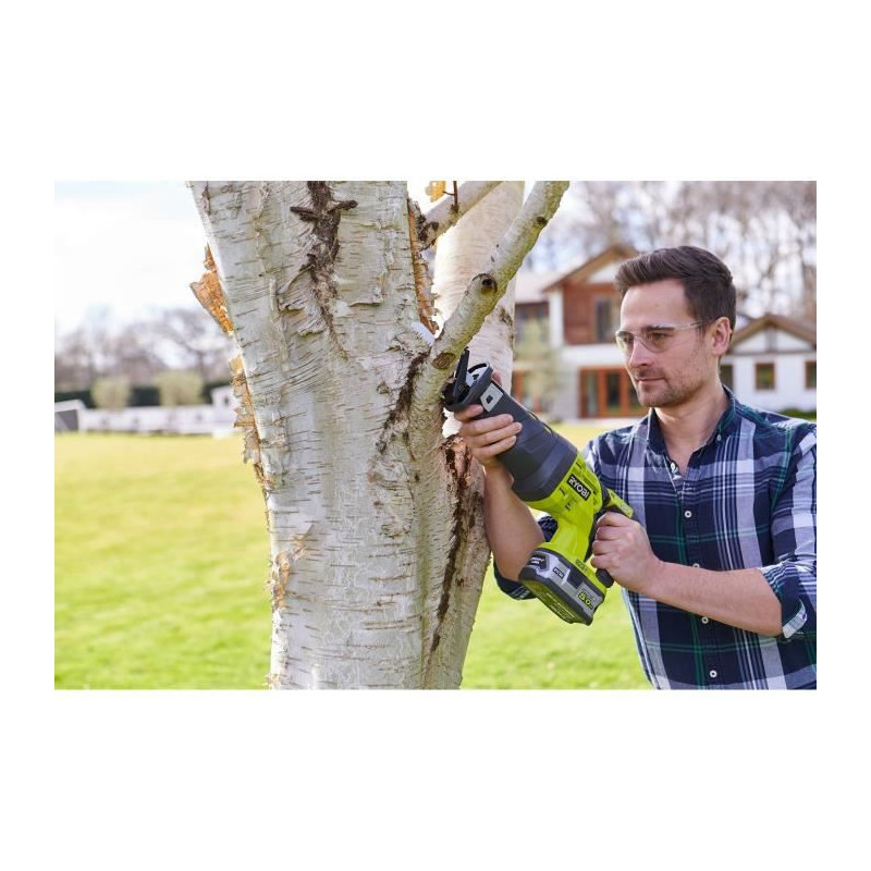 R18RS-0 Scie sabre 18 V - course de lame 28 mm - R18RS-0 - RYOBI - Idéale pour les travaux de démolition, les coupes de branches et de tubes tous matériaux. Amélioration du moteur pour des performances de coupe comparables aux scies filaires (en comparaison avec des scies sabres 800 W classiques) Système anti vibration : meilleure utilisation de la machine et diminution de la fatigue Changement de lame sans outil pour un changement simple et rapide Patin ajustable pour un meilleur contrôle de coupe Nouveau GripZone micro alvéolé : prise en main ferme et confortable et meilleure maîtrise de la machine