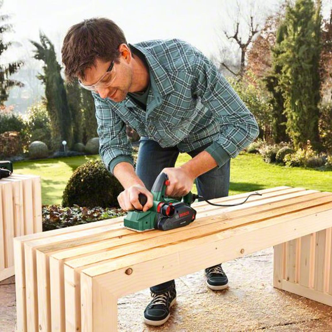 Caractéristiques techniques Puissance absorbée 680 W Puissance débitée 680 W Epaisseur des copeaux 0 - 2,0 mm Epaisseur de feuillure 0 - 8 mm Largeur de rabotage 82 mm Régime à vide 19.500 tr/min Dimensions (L x l x H) 370 x 190 x 180 mm Poids 2,400 kg Sous-division catégories de produits Rabot Niveau sonore Le niveau sonore pondéré A de l'outil électroportatif est typiquement de : niveau de pression acoustique 86 dB(A) ; niveau de puissance acoustique 97 dB(A). Incertitude K = 3 dB. Dimensions de l’emballage (longueur) 369 mm Dimensions de l’emballage (largeur) 197 mm Dimensions de l’emballage (hauteur) 184 mm Dimensions emballage (L x l x H) 369 x 197 x 184 mm Fonctions Dispositif de blocage de l’interrupteur ✓ Rainures en V ✓ Patin de repos ✓ Evacuation des copeaux des deux côtés ✓ Dépôt pour lame de rechange ✓ Information sur les bruits/vibrations Niveau de pression acoustique 86 dB(A) Niveau de puissance acoustique 97 dB(A) Incertitude K 3 dB