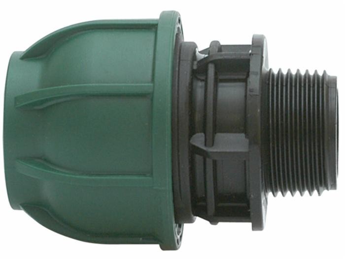 Raccord mâle pour PE de 25 mm filetage 3/4' Pression de travail : 12.5 bars Filetage mâle : 3/4' Pour PE de 25 mm
