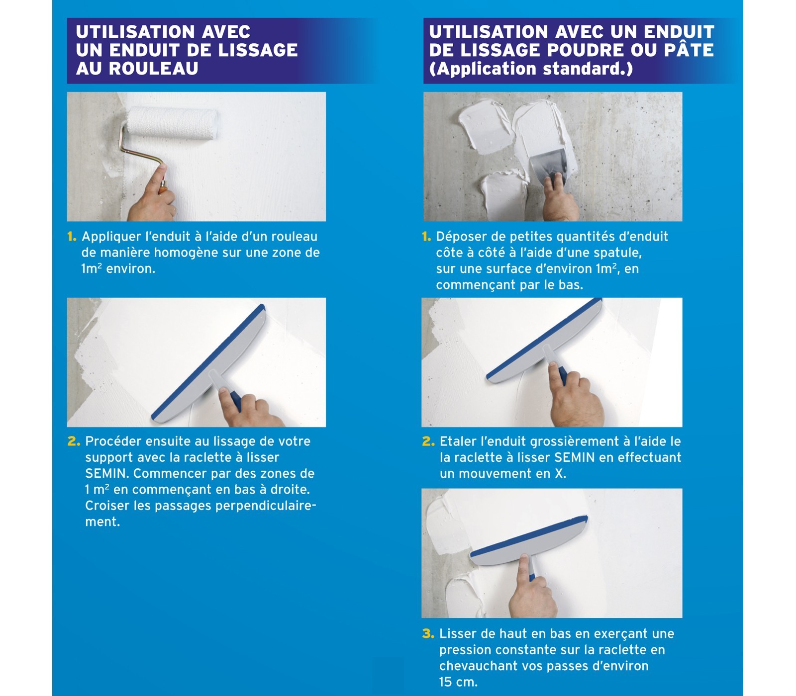 Après utilisation de la raclette, nettoyer la raclette à lisser à l'eau tiède avant que l'enduit ne sèche.
