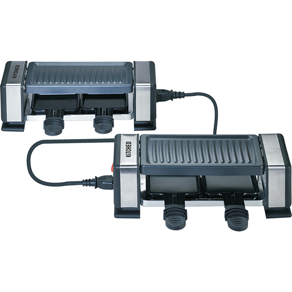 Accessoires inclus 2 appareils à raclette, 2 plaques de cuisson gril, 4 poêlons, 1 cordon de connexion électrique des 2 appareils de cuisson