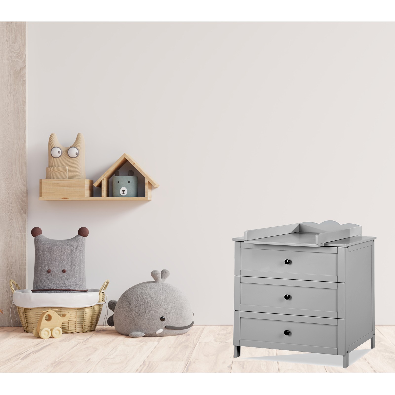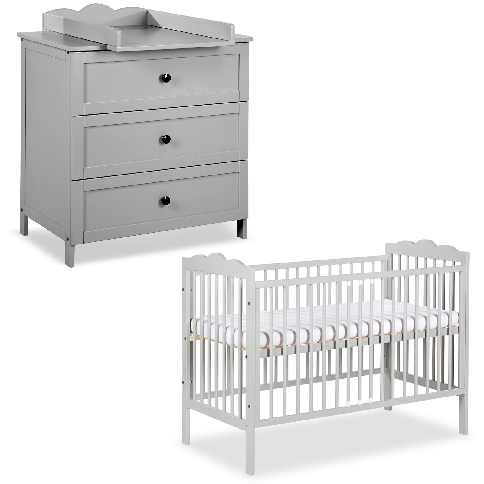 RADEK III Chambre bébé commode à langer et lit en bois Gris 120x60 cm