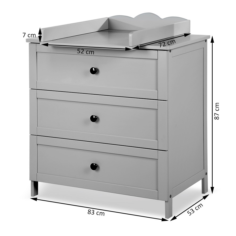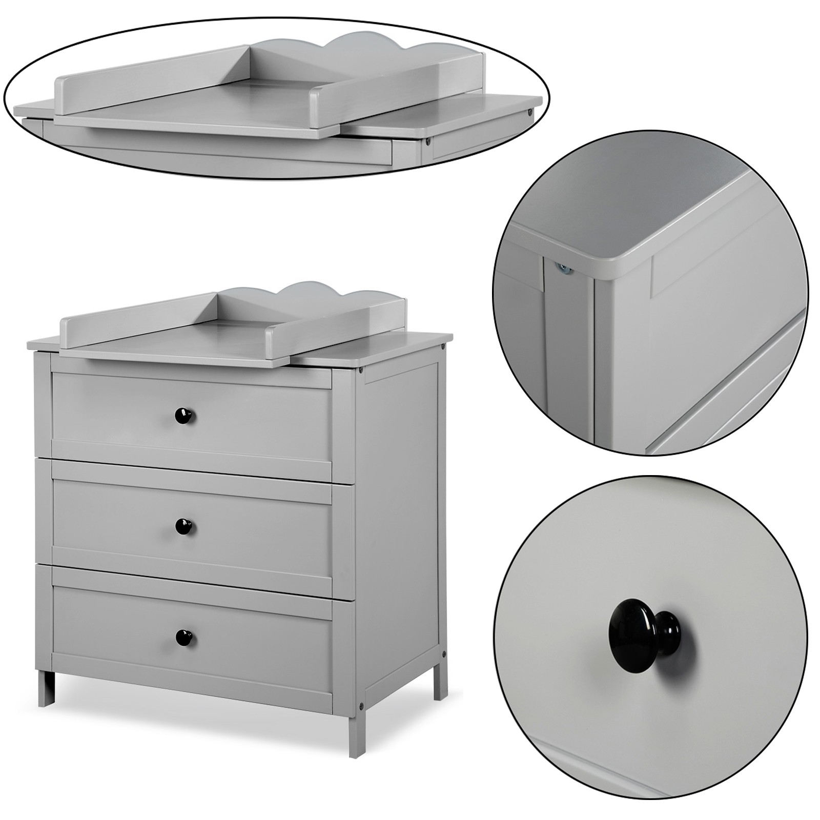 RADEK III Commode à langer 3 tiroirs plan à langer amovible Gris