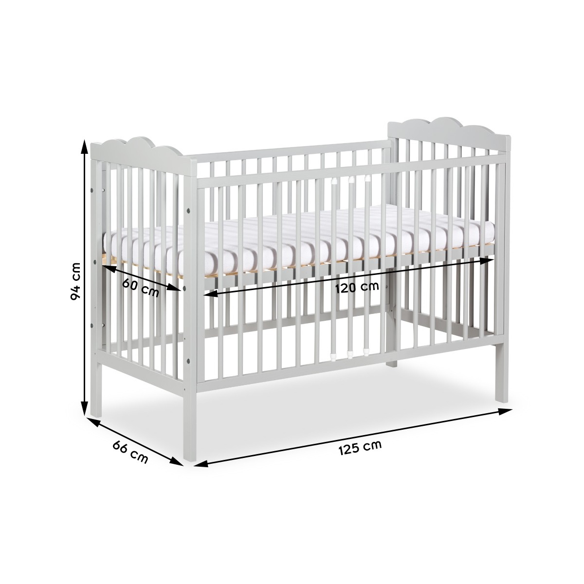 | Libellé | RADEK III Lit bébé à barreaux en bois pin massif Gris 120x60 cm |
