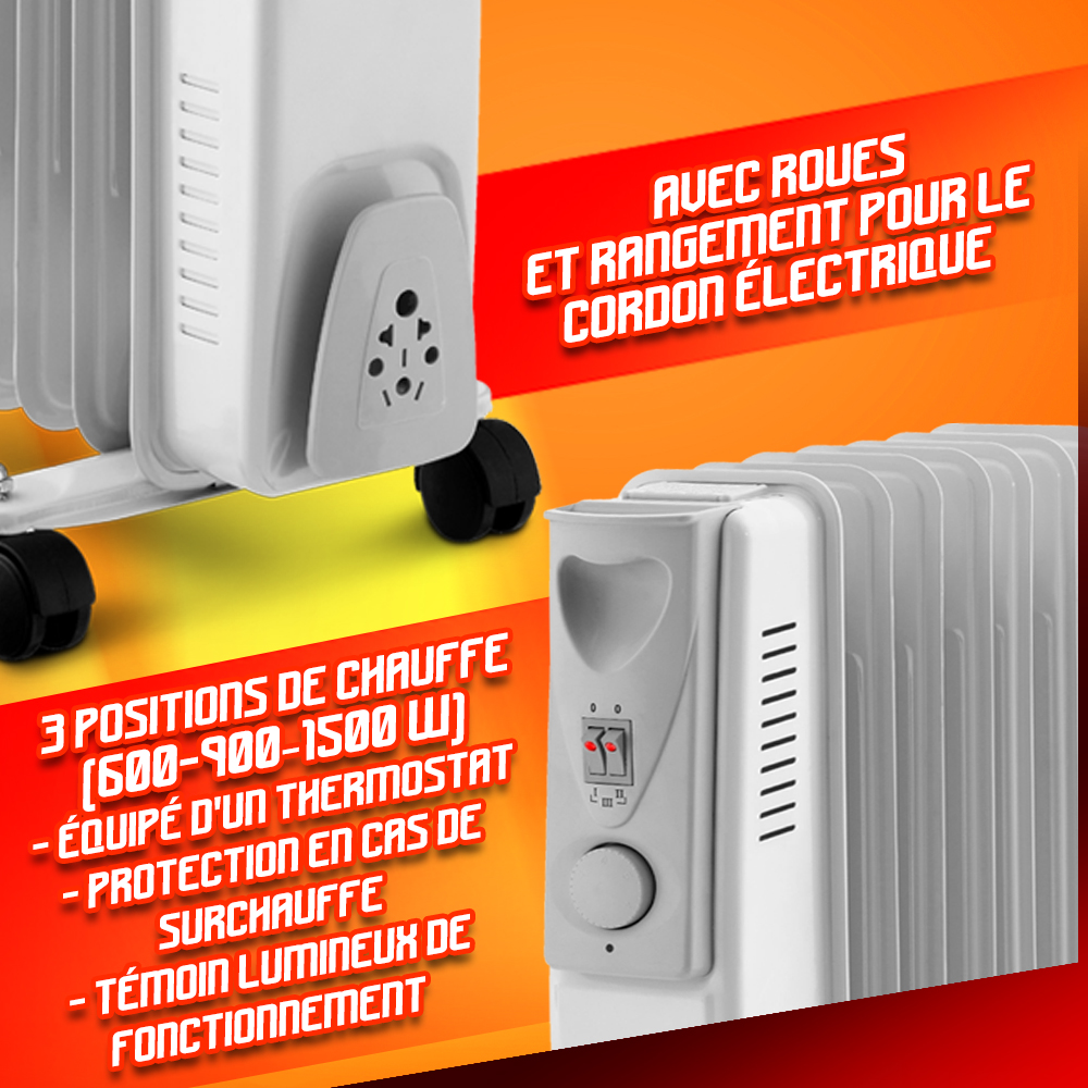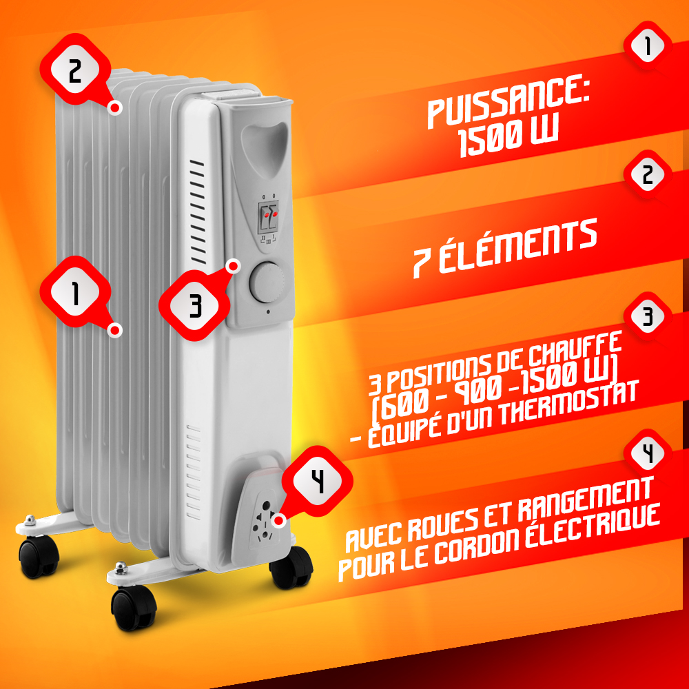 Radiateur bain d'huile 1500W 7 éléments - Warm Tech