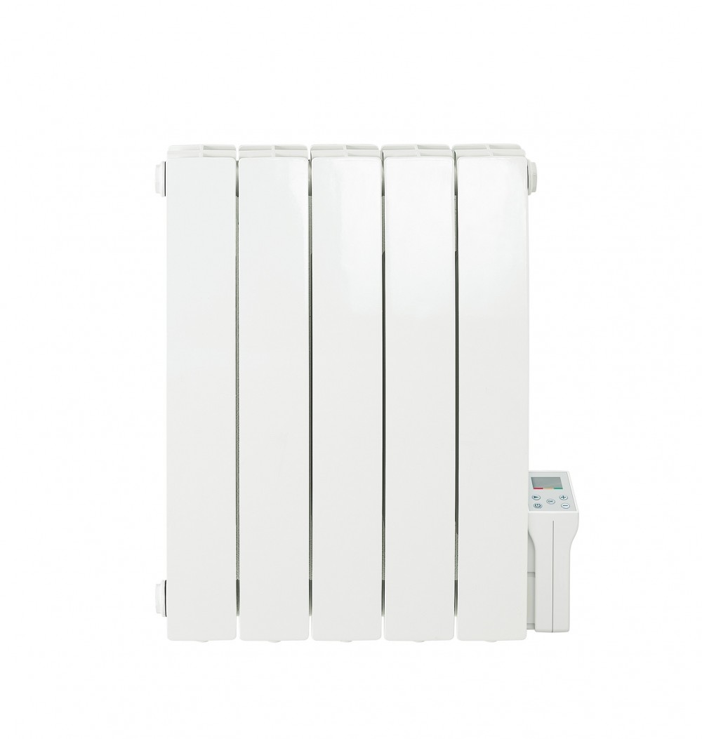 Radiateur à inertie fluide (huile minérale). Corps en aluminium, forme galbée et cintrée. Résistance thermoplongée blindée inox. Fil pilote 6 ordres. Thermostat digital programmation hebdomadaire libre (4 programmes) et pré-enregistrée (9 programmes). Thermostat avec indicateur comportemental. Détecteur de fenêtre ouverte. Radiateur étroit : seulement 47 cm de largeur.